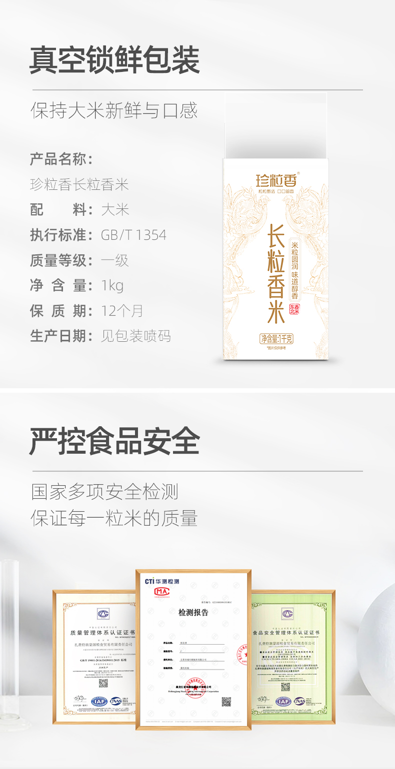 商品名称:珍粒香长粒香大米1KG 单位:包 钢琴白
