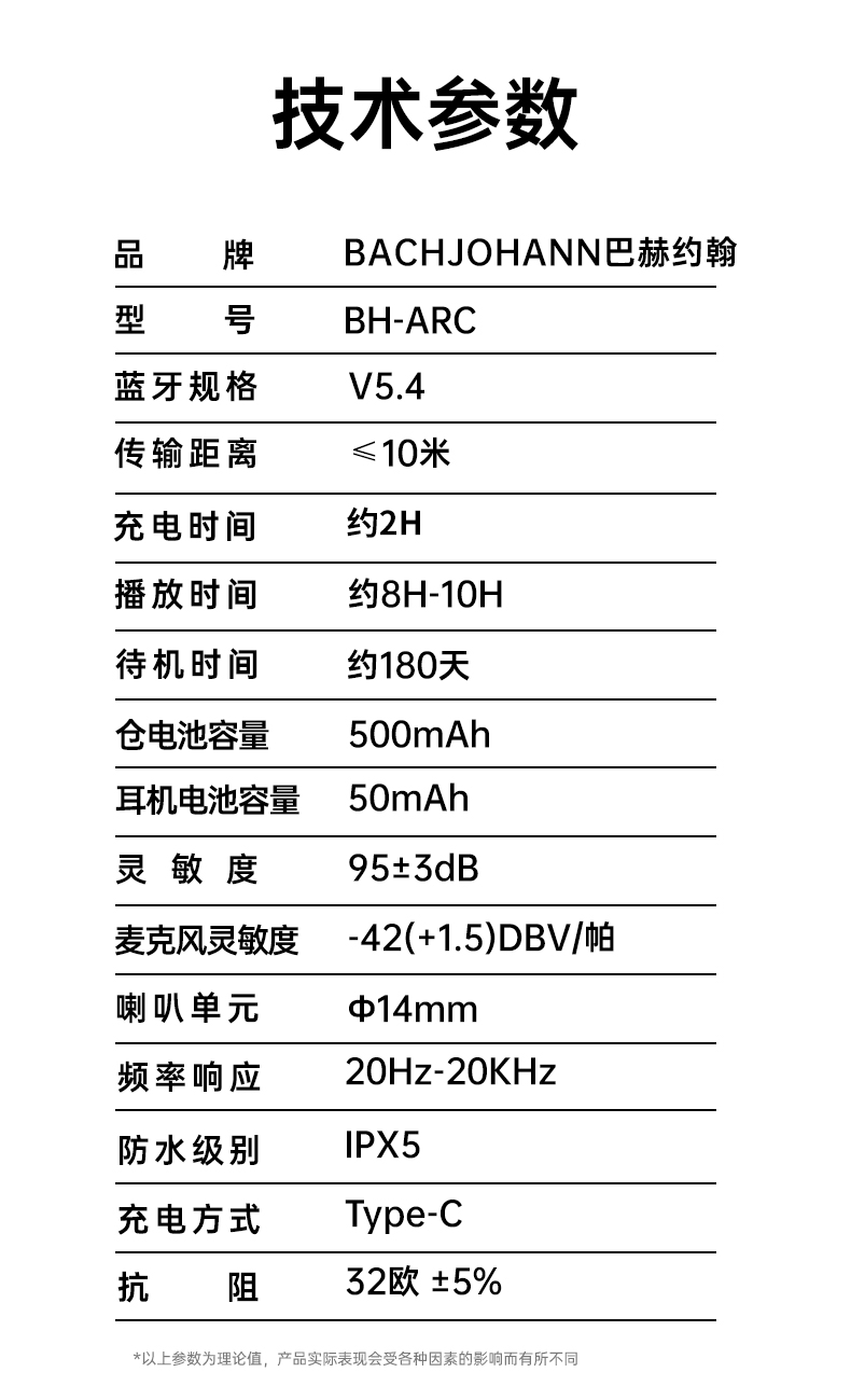 商品名称:巴赫约翰(bach johann) 开放式 蓝牙耳机 BH-ARC 168*108*48mm 黑色(单位:个)