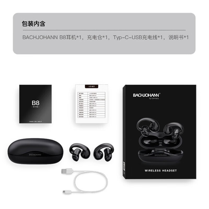 商品名称:巴赫约翰 BACHJOHANN B8夹耳式蓝牙耳机 单位:个 黑色
