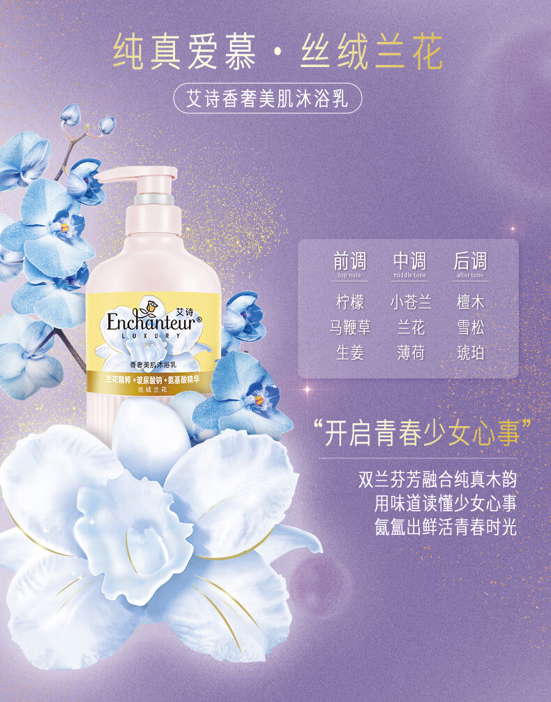 商品名称:艾诗香奢美肌沐浴乳(丝绒兰花)450g(单位:瓶) 拿铁色