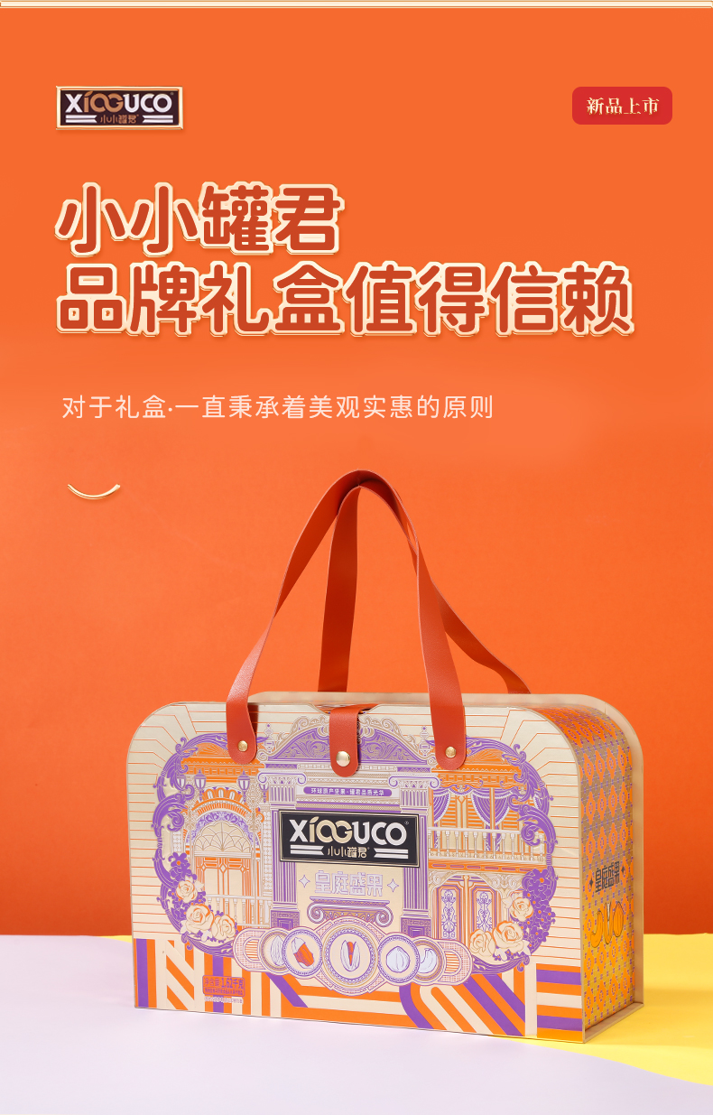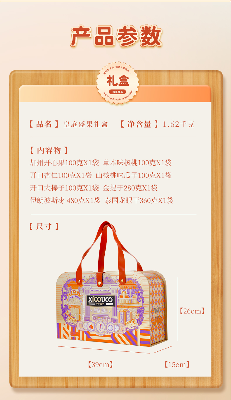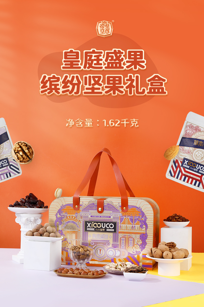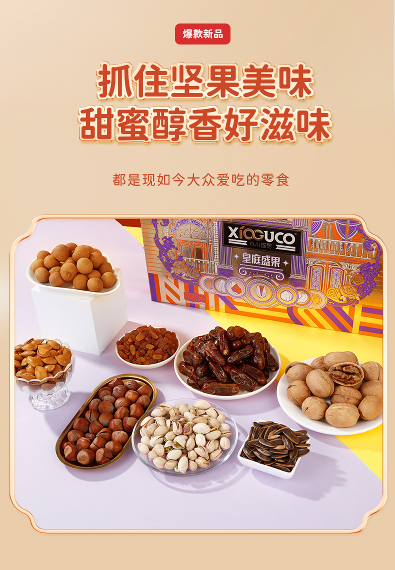 商品名称:小小罐君 皇庭盛果坚果年货礼盒 1620g*1 单位:盒 豆沙色