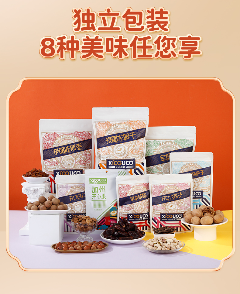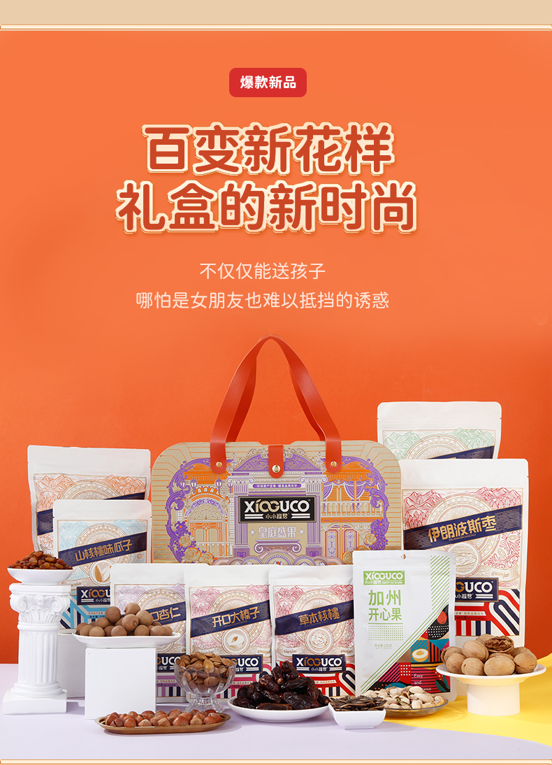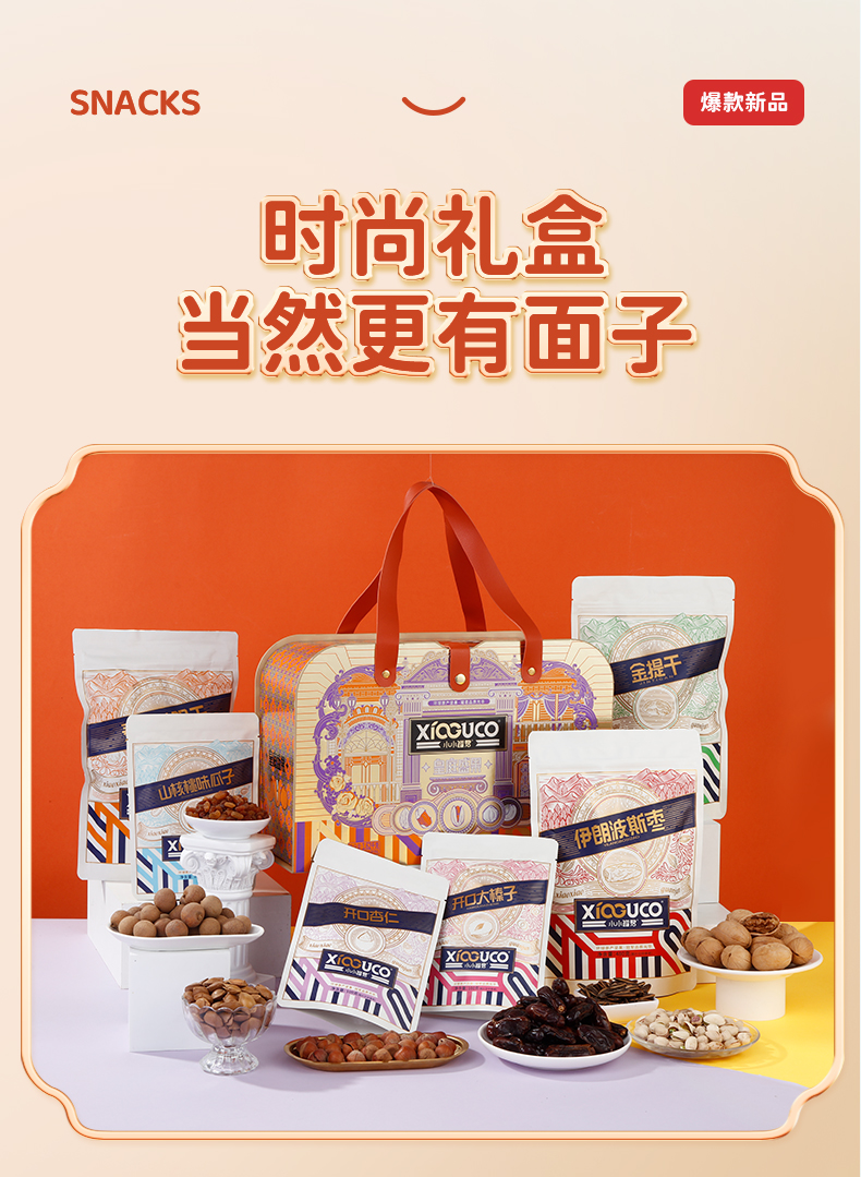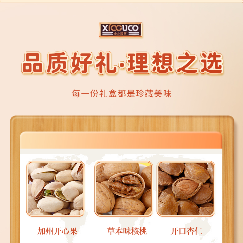 商品名称:小小罐君 皇庭盛果坚果年货礼盒 1620g*1 单位:盒 豆沙色