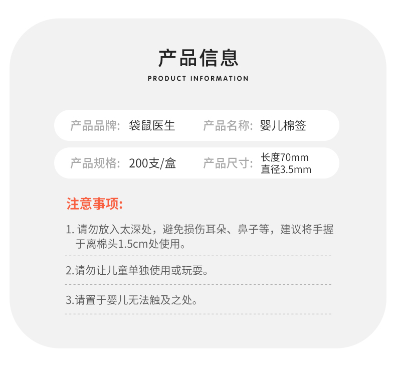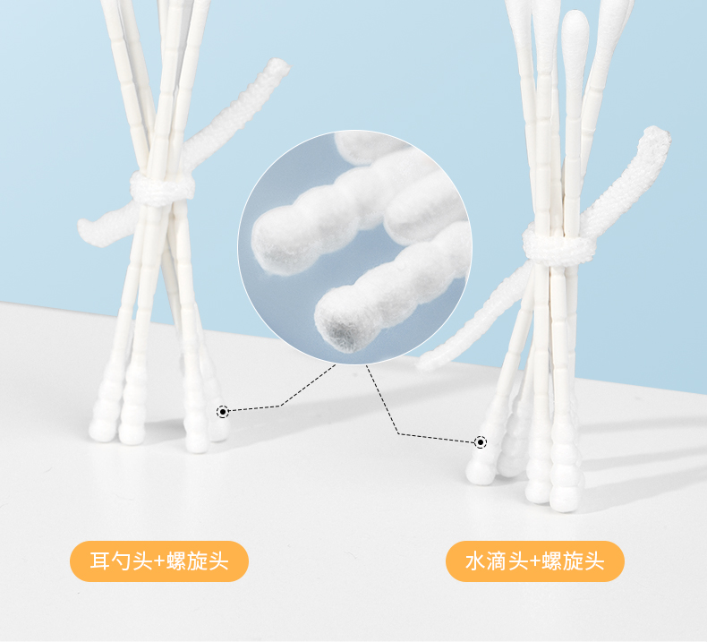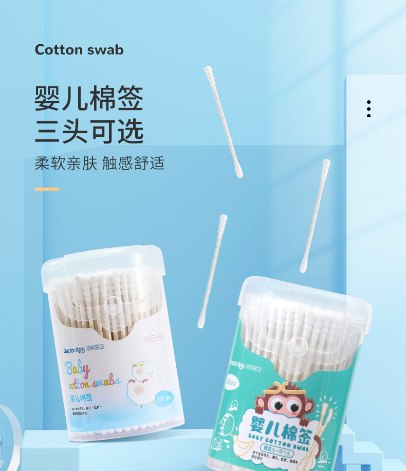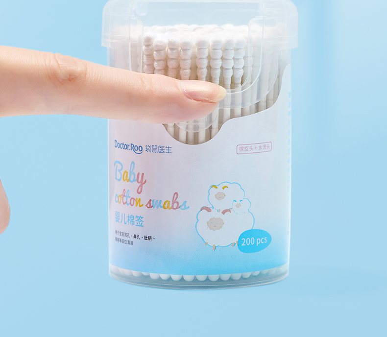 商品名称:袋鼠医生婴儿棉签儿童清洁棉棒细轴新生儿宝宝鼻屎挖耳孔肚脐清洁双头两用 螺旋头+水滴头棉签200支