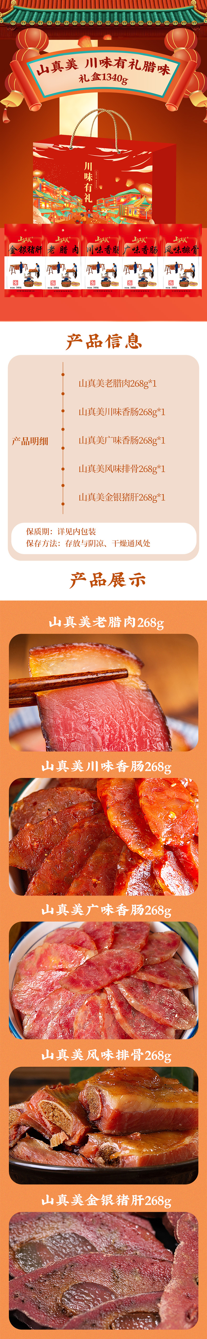 商品名称:山真美 川味有礼腊味礼盒1340g(单位:盒) 拿铁色