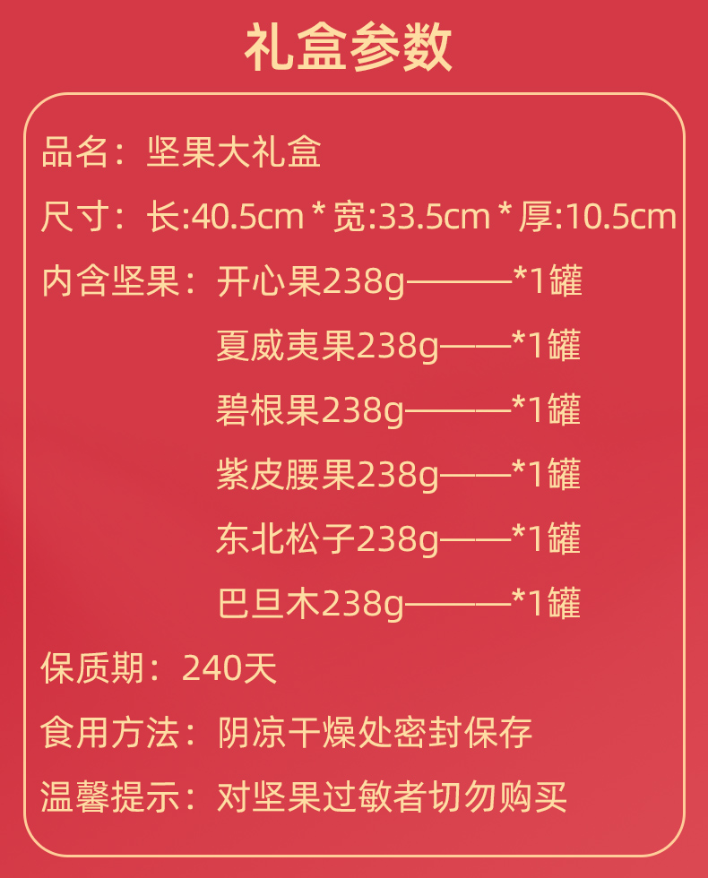 商品名称:米伊小姐坚果礼盒328版1.428kg(单位:箱) 橙色