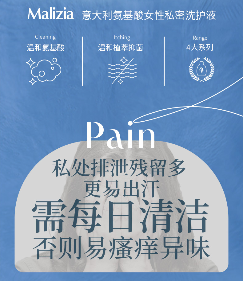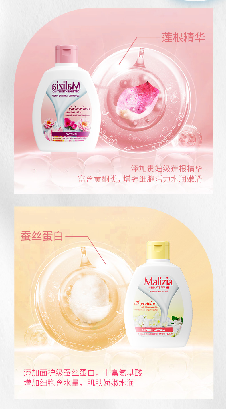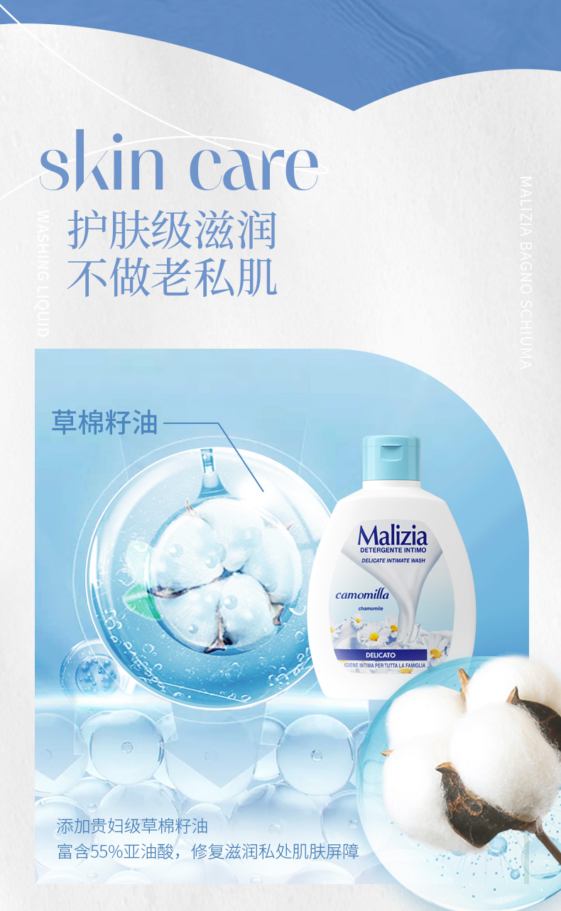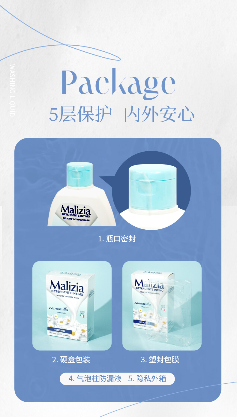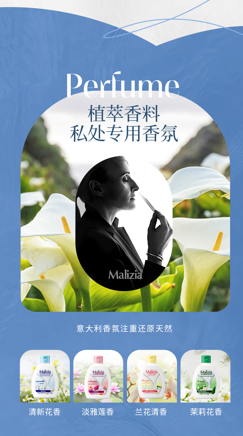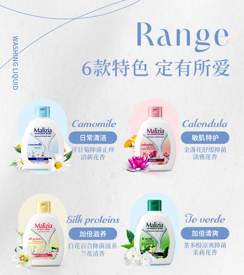 商品名称:意大利Malizia玛莉吉亚女性私处洗护液 止痒私处护理护理液洗液套装 洋甘菊+芦荟+绿茶茉莉600ml组合套装