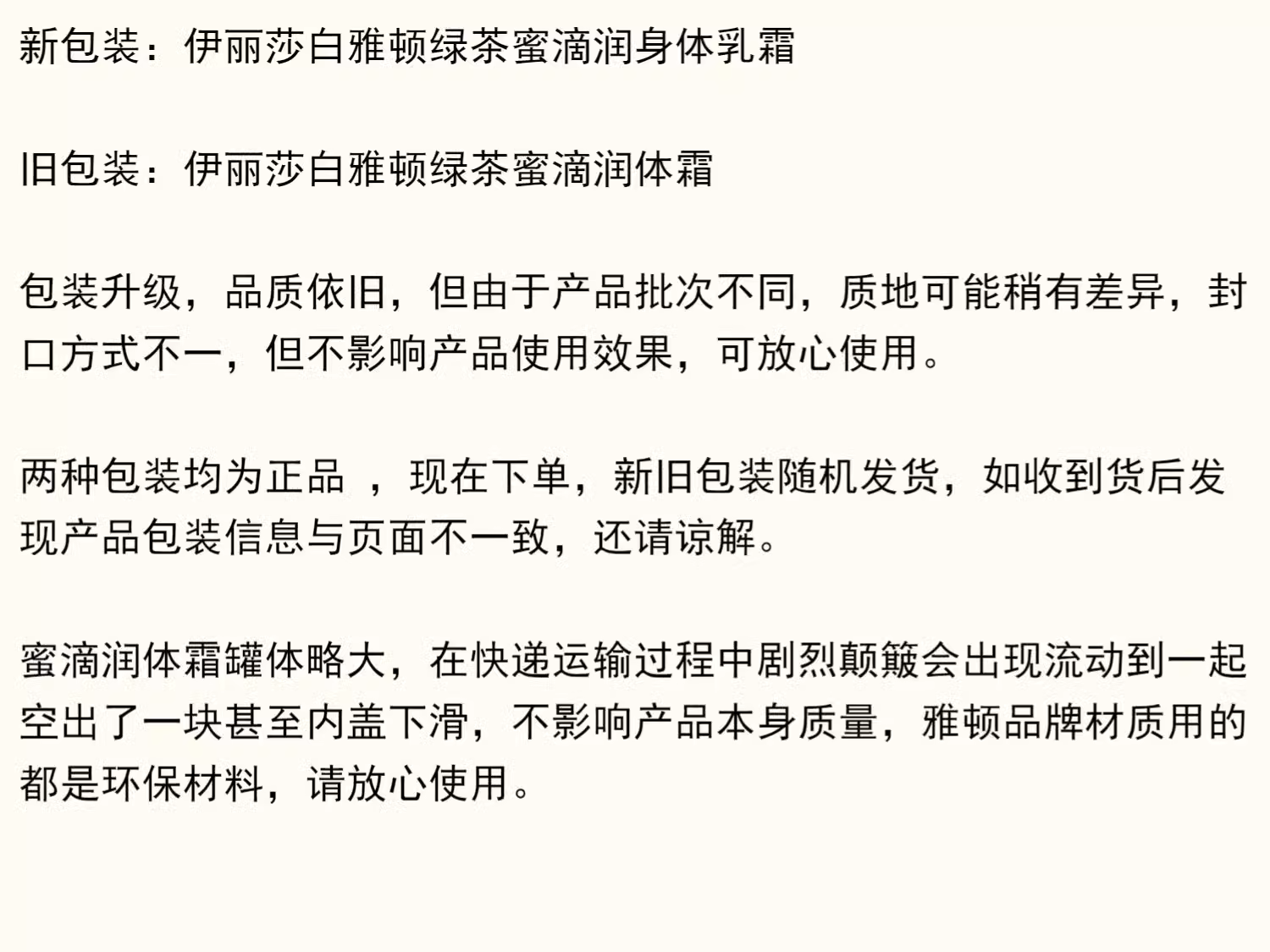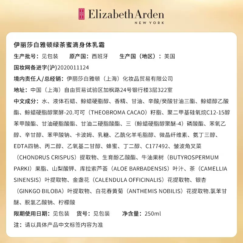 商品名称:伊丽莎白雅顿绿茶蜜滴身体霜250ml(单位:瓶) 白色
