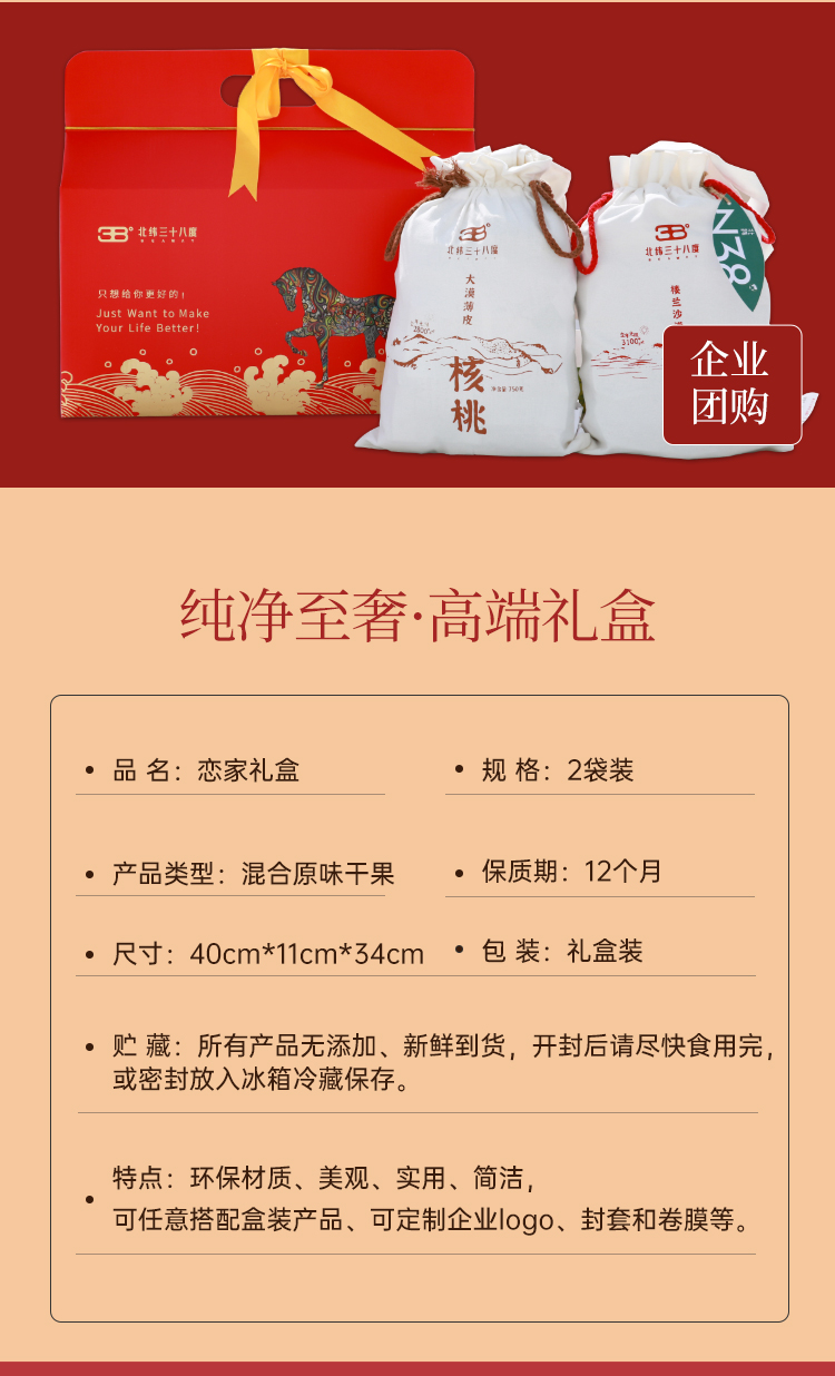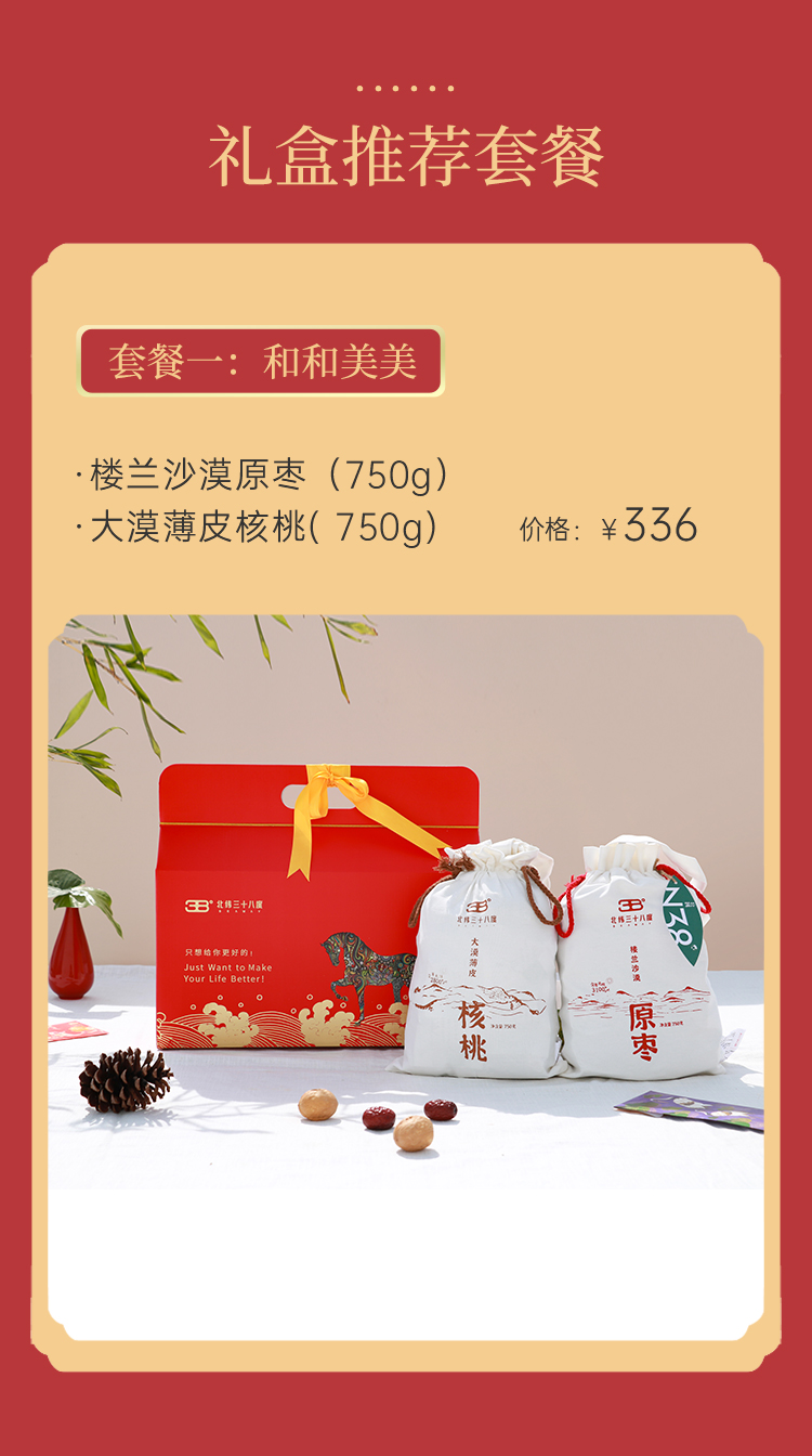 商品名称:北纬三十八度丨恋家知味马到成功干果礼盒1500g健康无添加红枣核桃布袋装家庭版单位:盒 红色