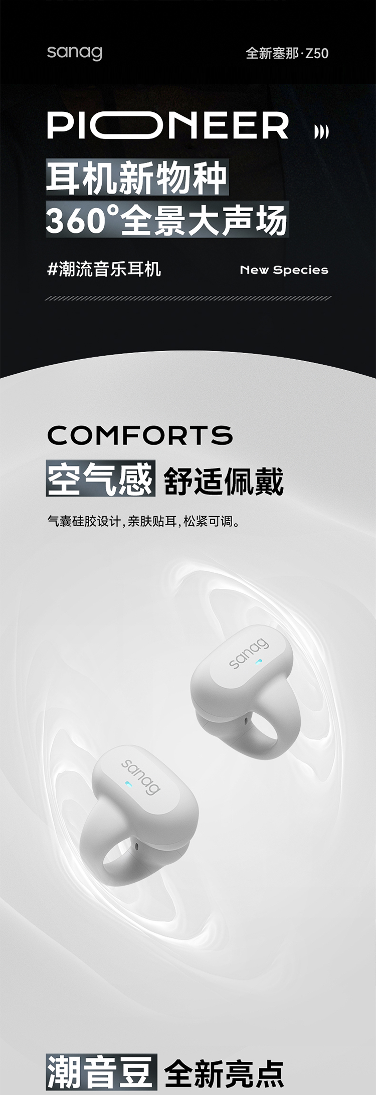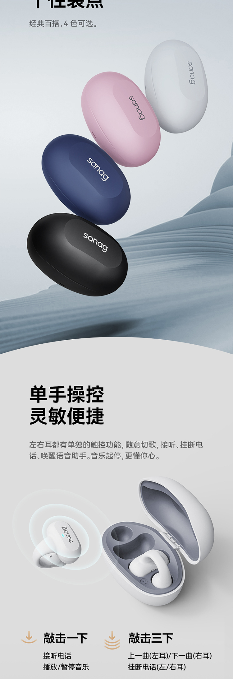 商品名称:sanag塞那气骨传导蓝牙耳机无线运动不入耳夹挂耳式传感新款Z50SPro 单位:对 粉色