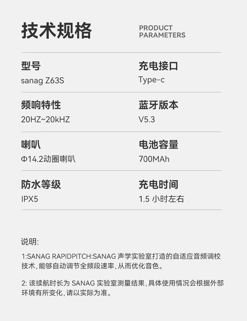 商品名称:sanag塞那z63不入耳蓝牙耳机气骨传导开放挂耳式顶配版z63AIPromax个 白色