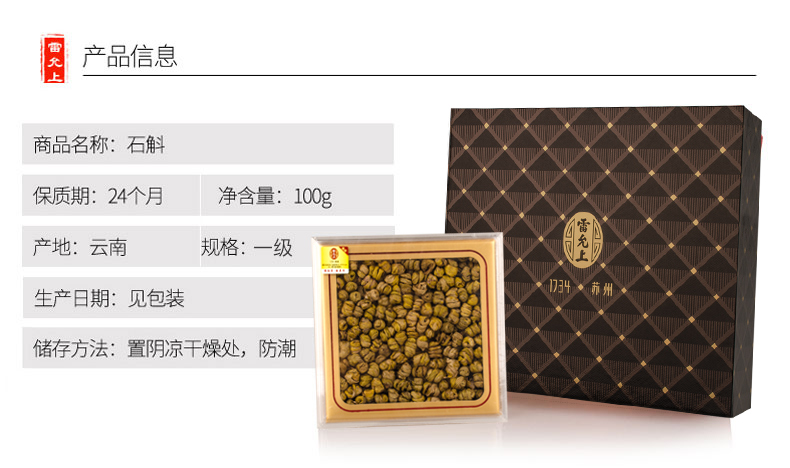 商品名称:雷允上石斛一级(紫皮)100g(单位:盒) 自然色