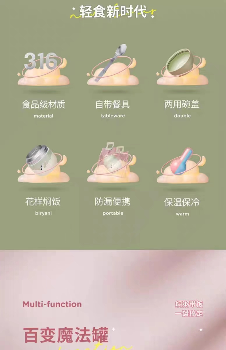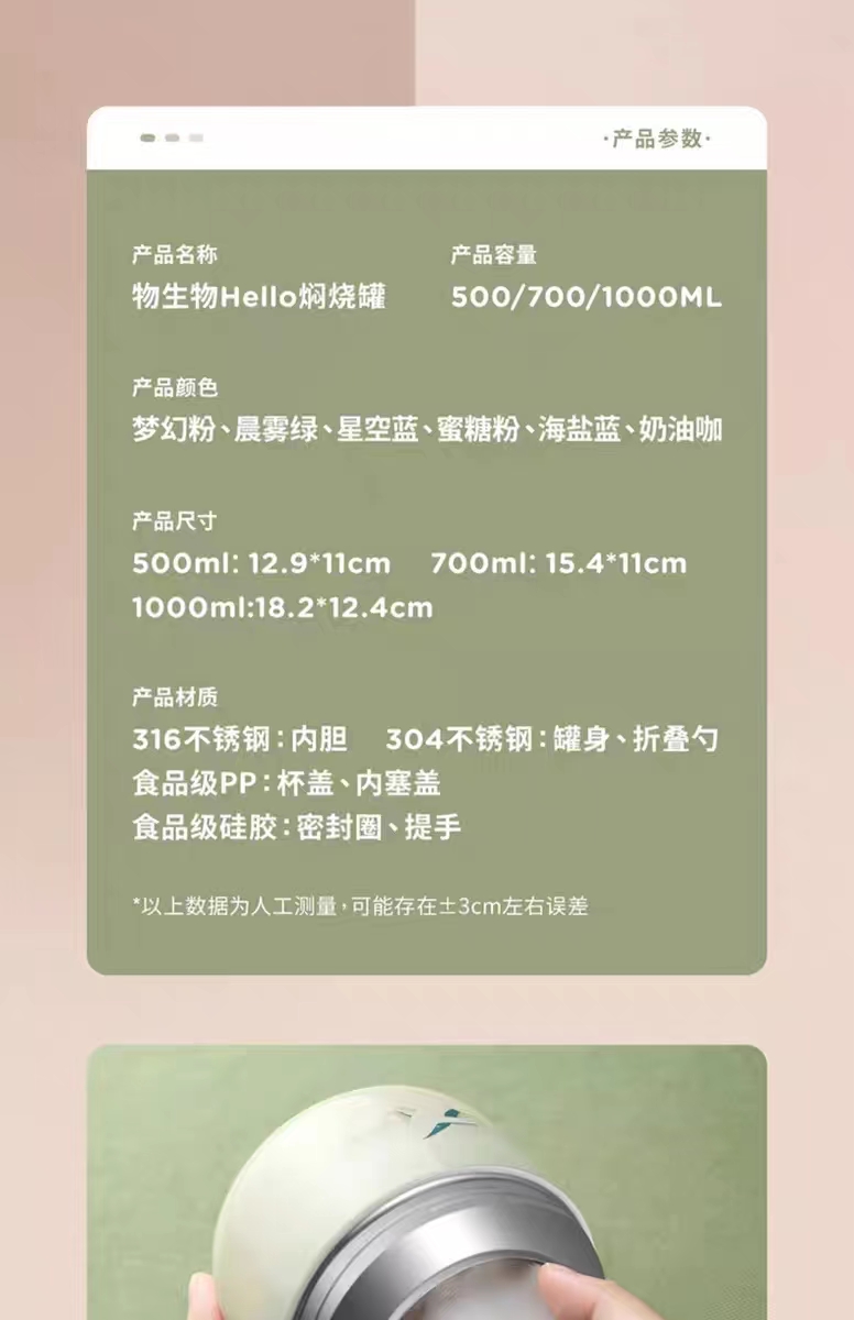 商品名称:物生物HELLO焖烧罐500ML 单位:个 绿色