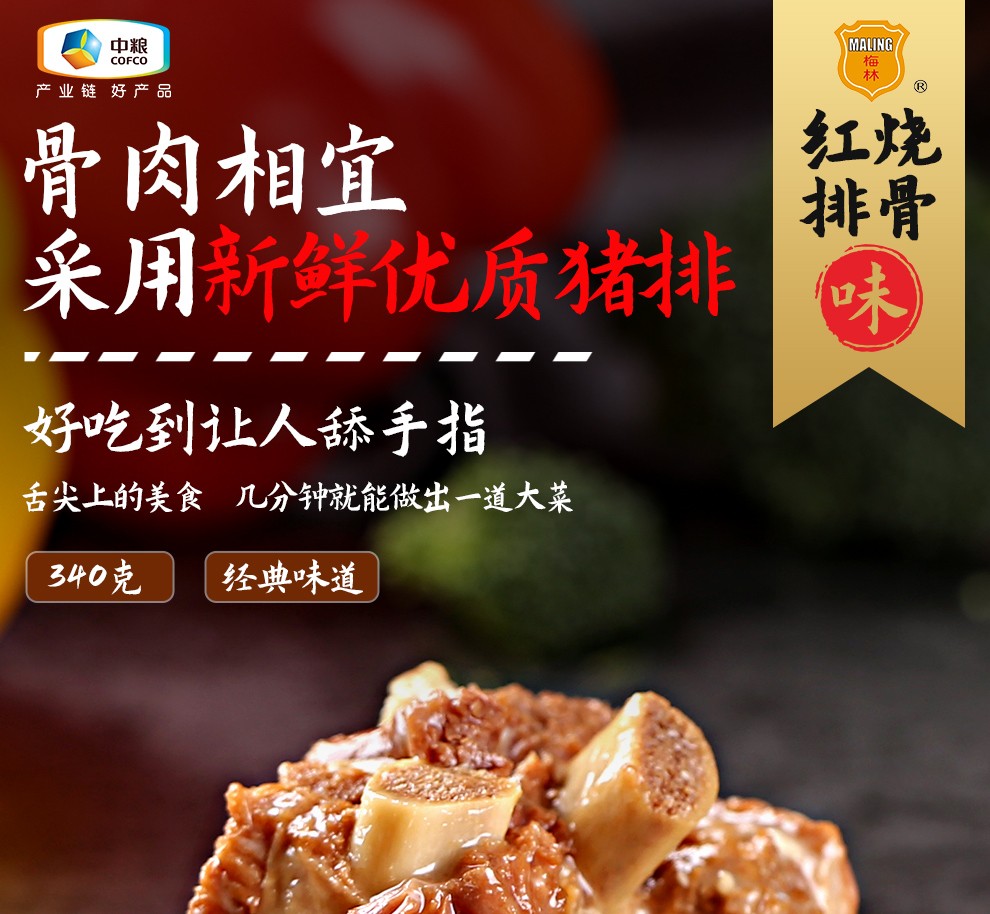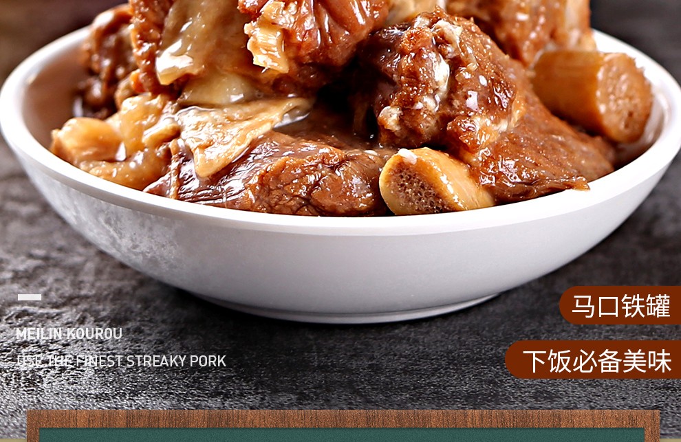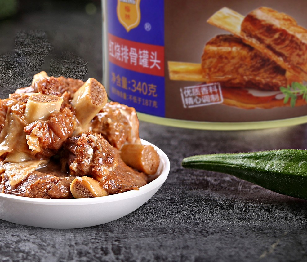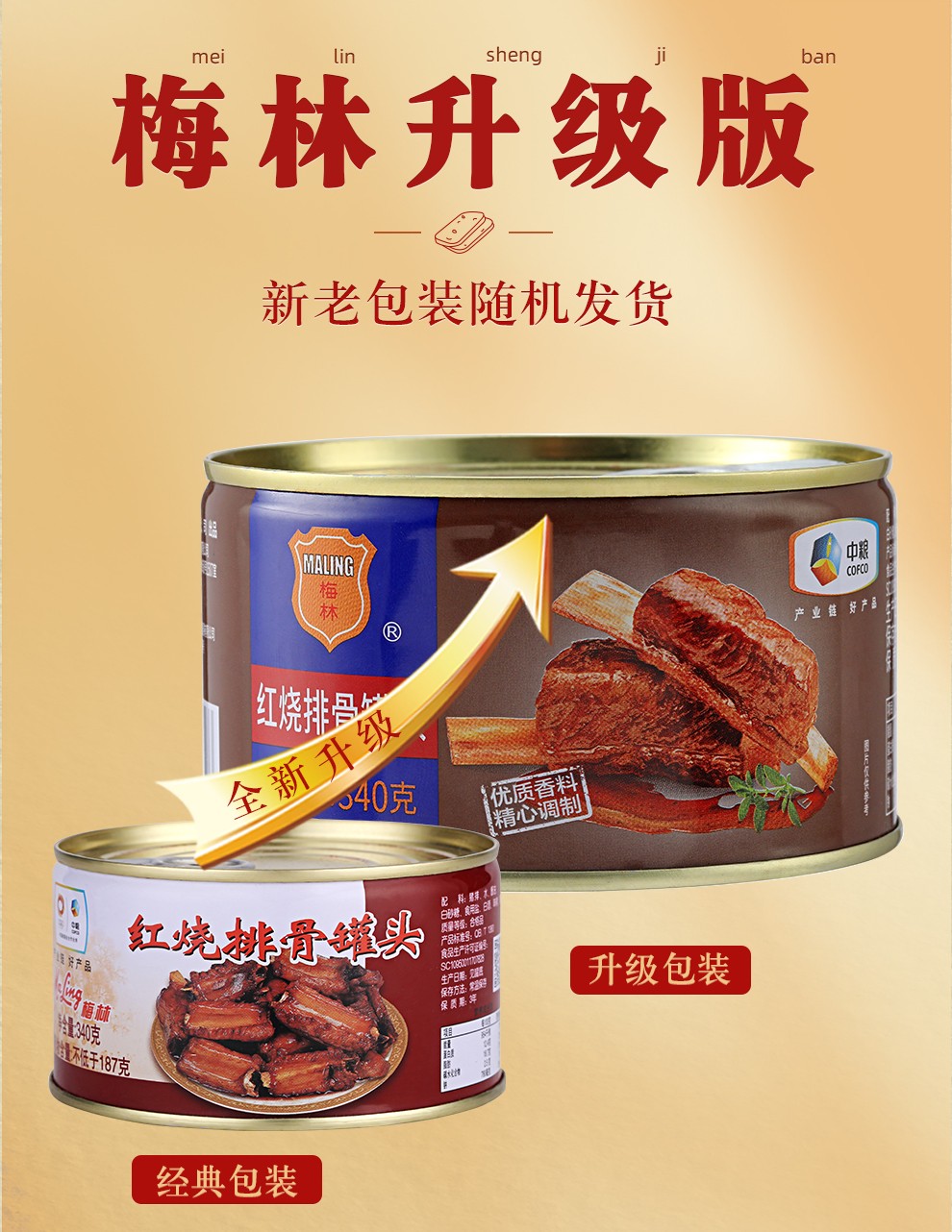 商品名称:梅林牌红烧排骨罐头340g*24罐(原装整箱) 混色