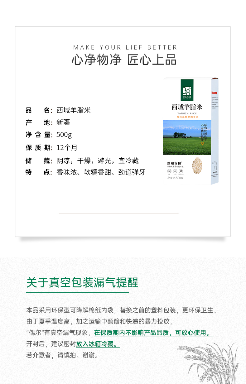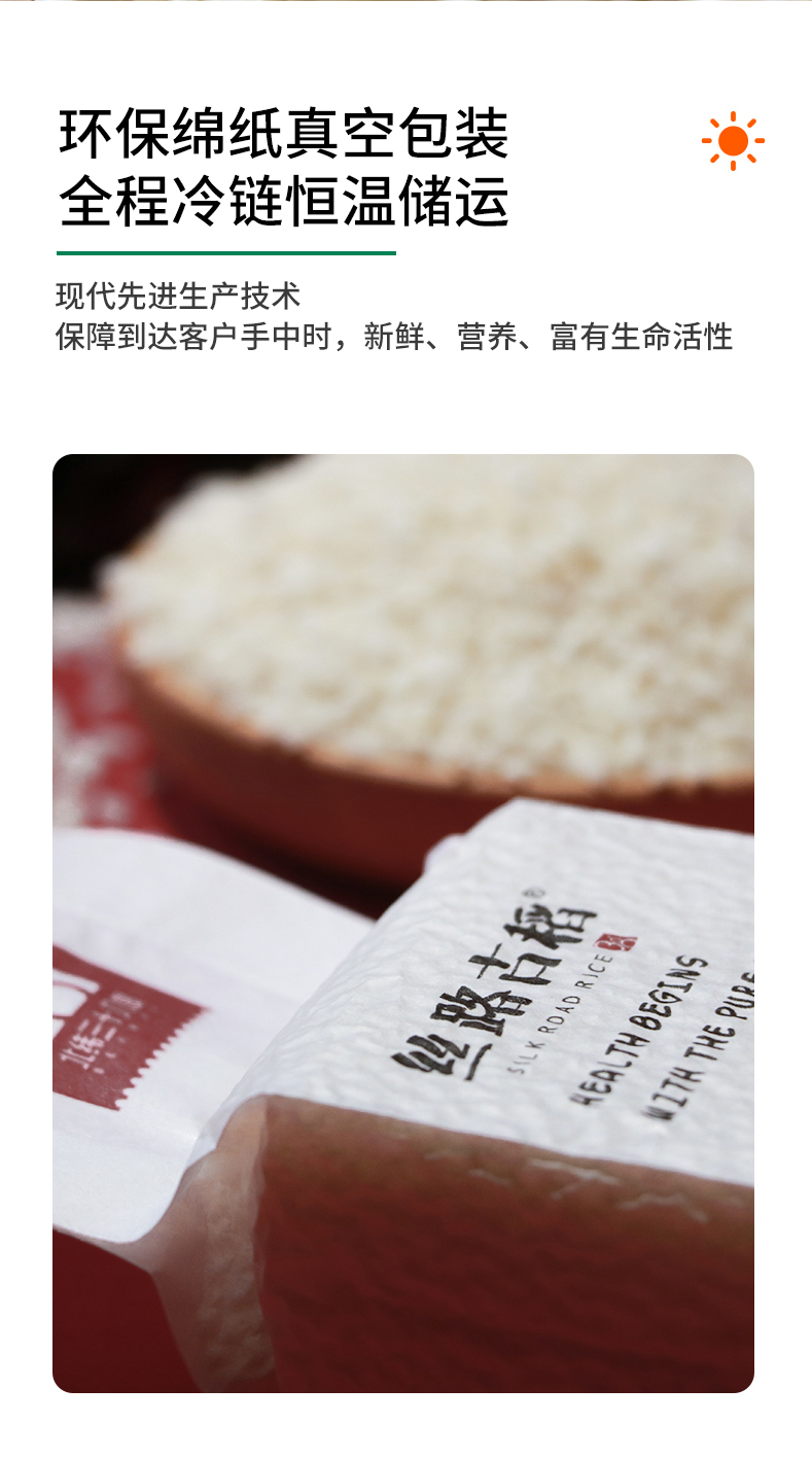 商品名称:北纬三十八度丝路古稻丨西域羊脂米500g优质软香米劲道软糯单位:盒 白色