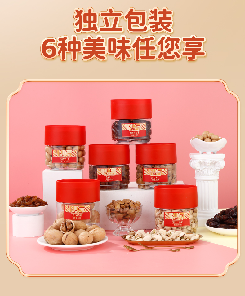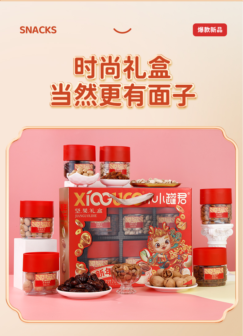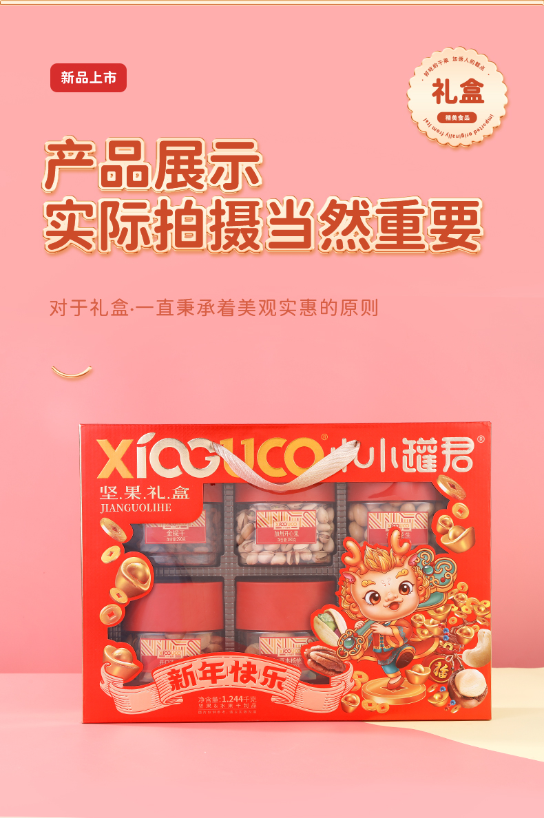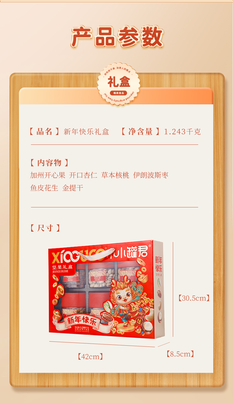 商品名称:小小罐君 新年快乐坚果礼盒 1243g*1 单位:盒 新年快乐