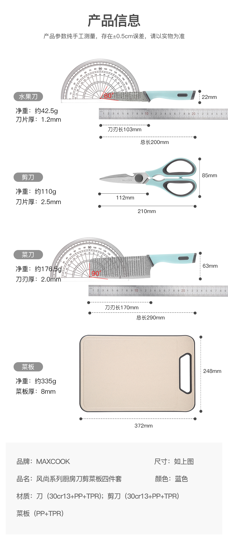 商品名称:美厨风尚系列厨房刀剪菜板四件套MCD7508(单位:套)