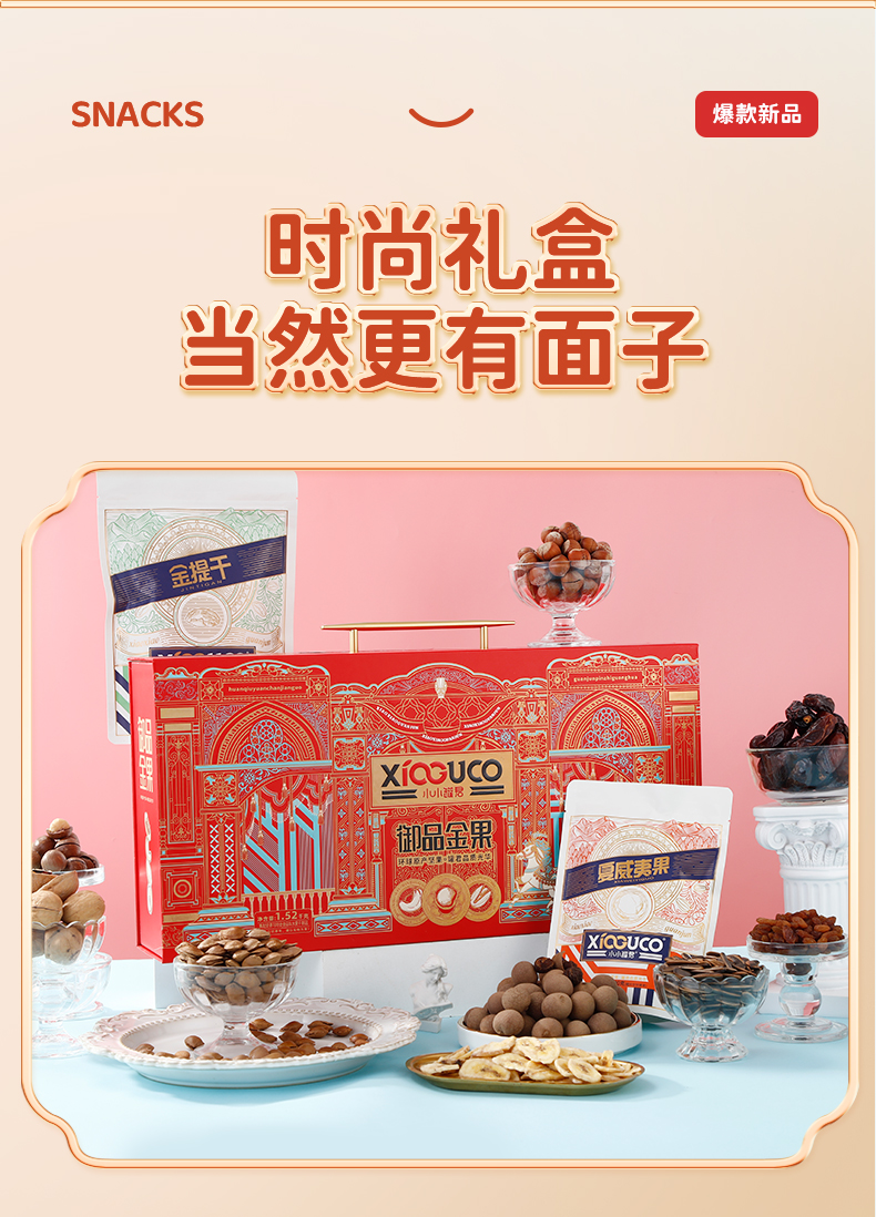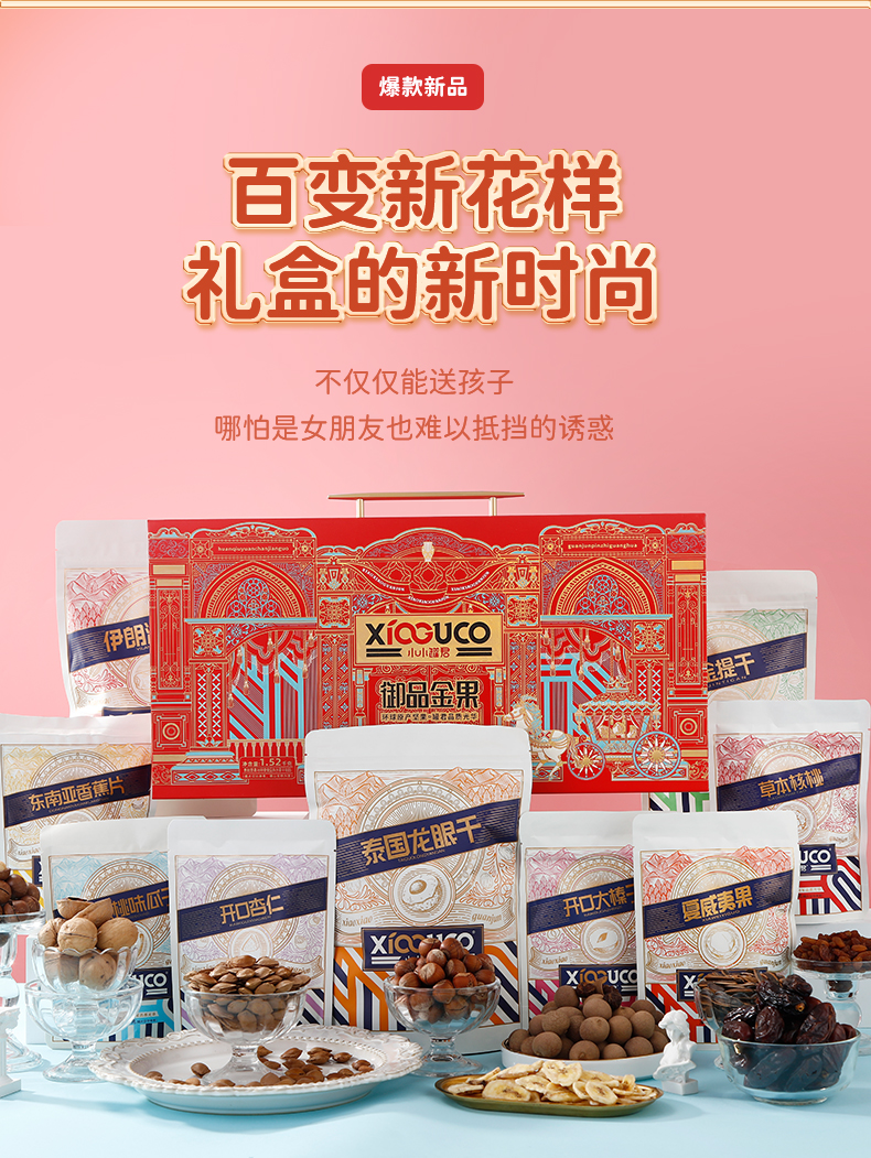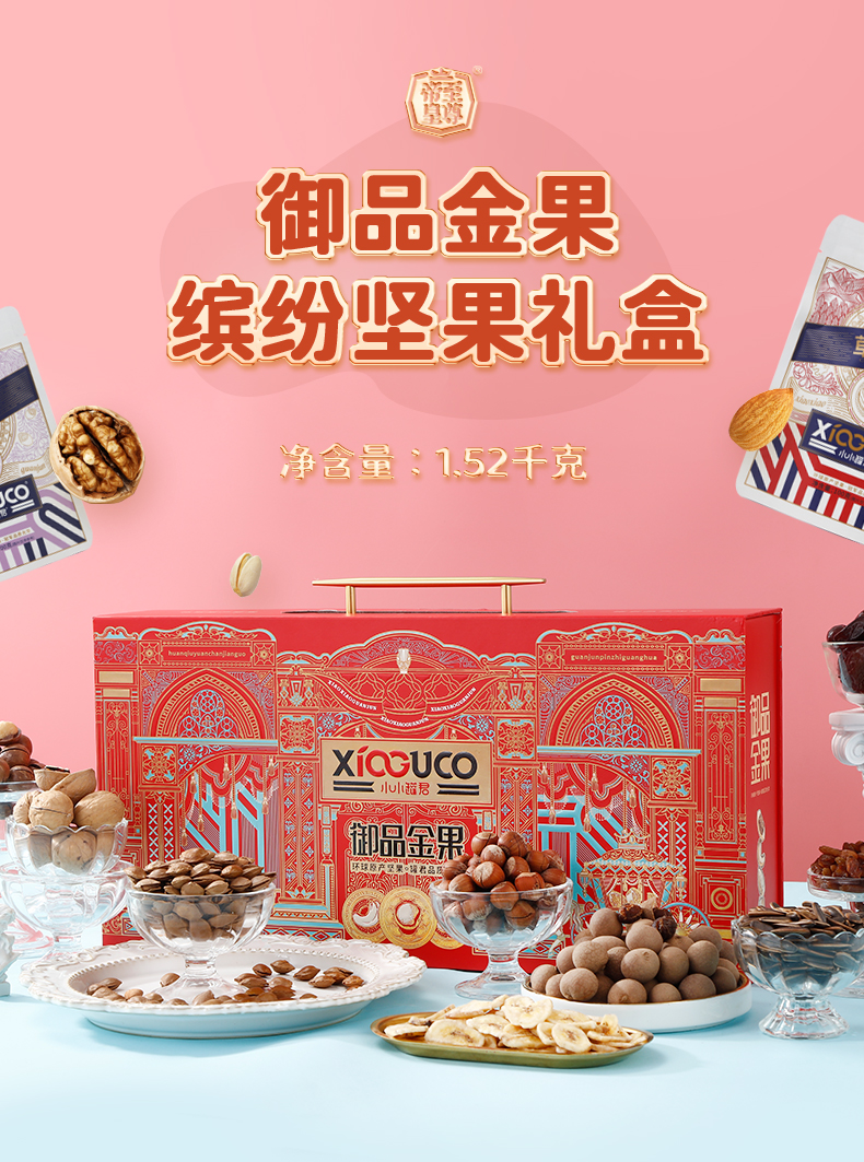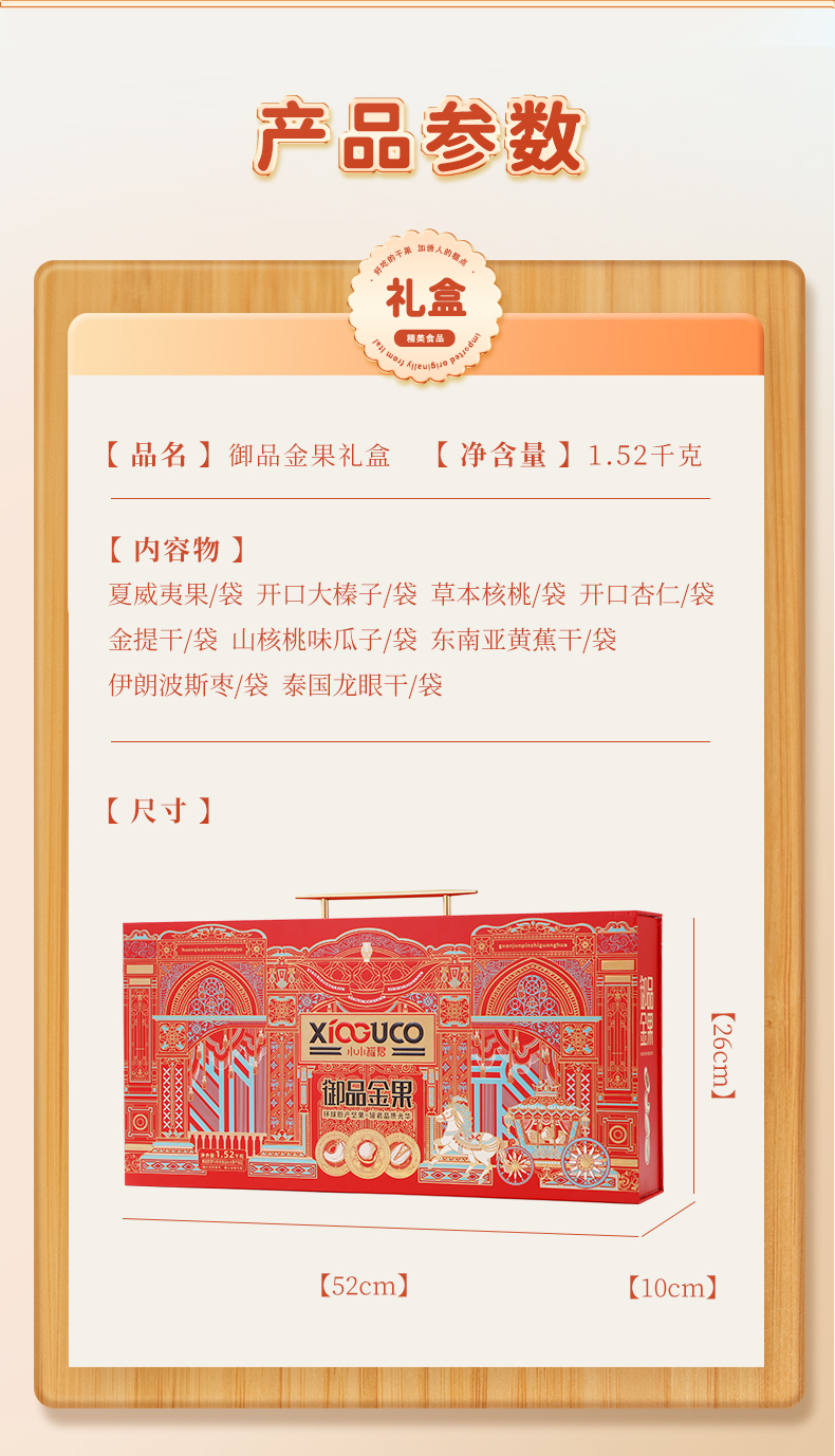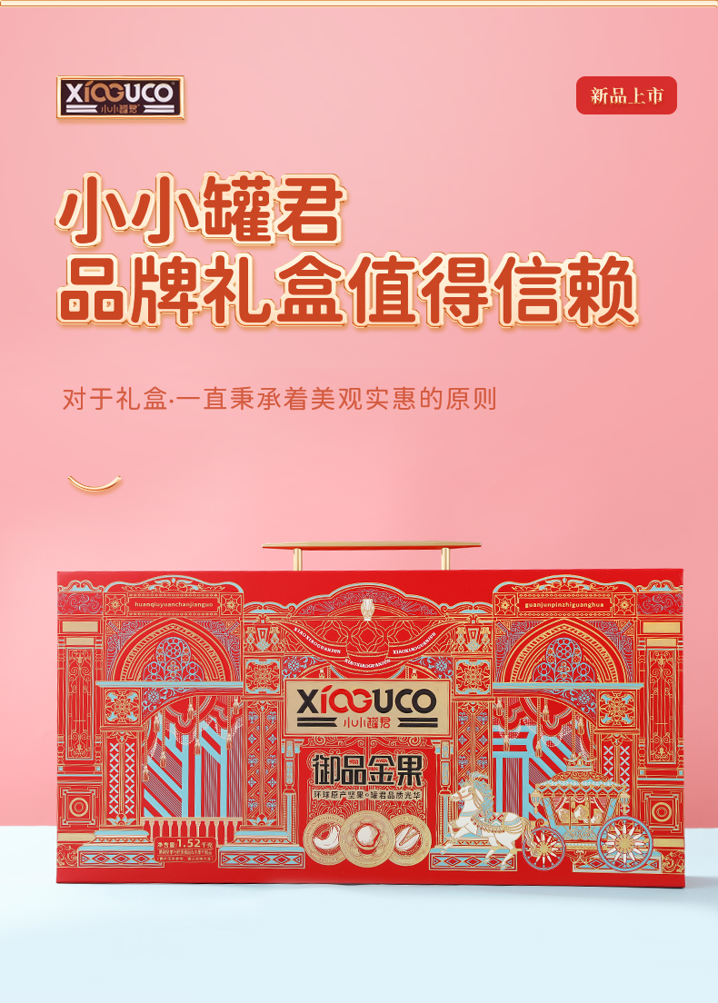 商品名称:小小罐君 御品金果 手提长盒坚果+果干礼盒 1520g*1 单位:盒 枫叶色