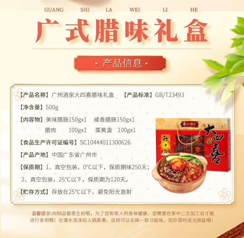 商品名称:广州酒家 大四喜腊味礼盒 500g单位:盒 拿铁色