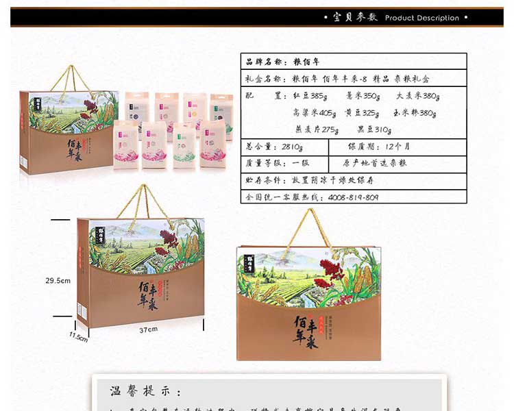 商品名称:粮佰年 佰年丰采8杂粮礼盒 拿铁色