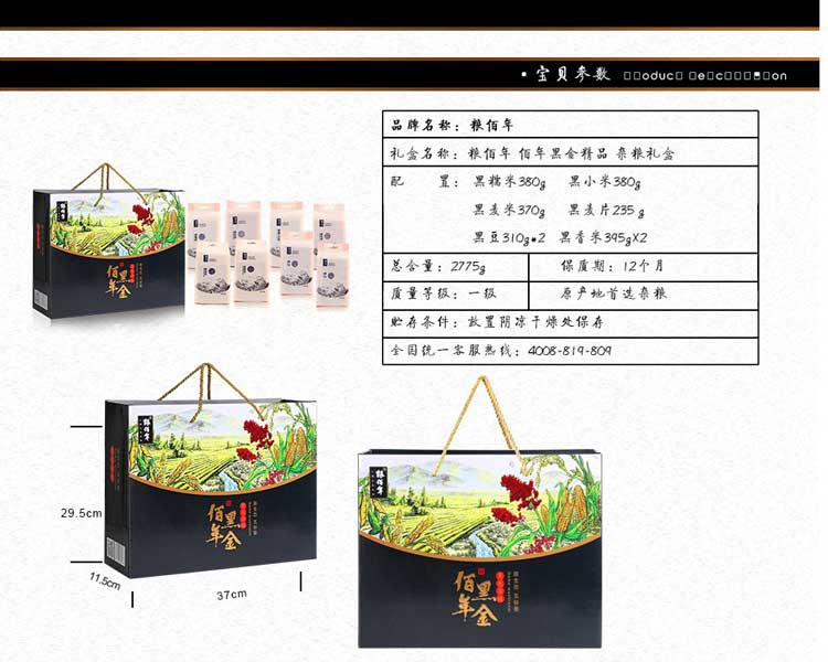商品名称:粮佰年 佰年黑金杂粮礼盒 (黑色系列) 拿铁色