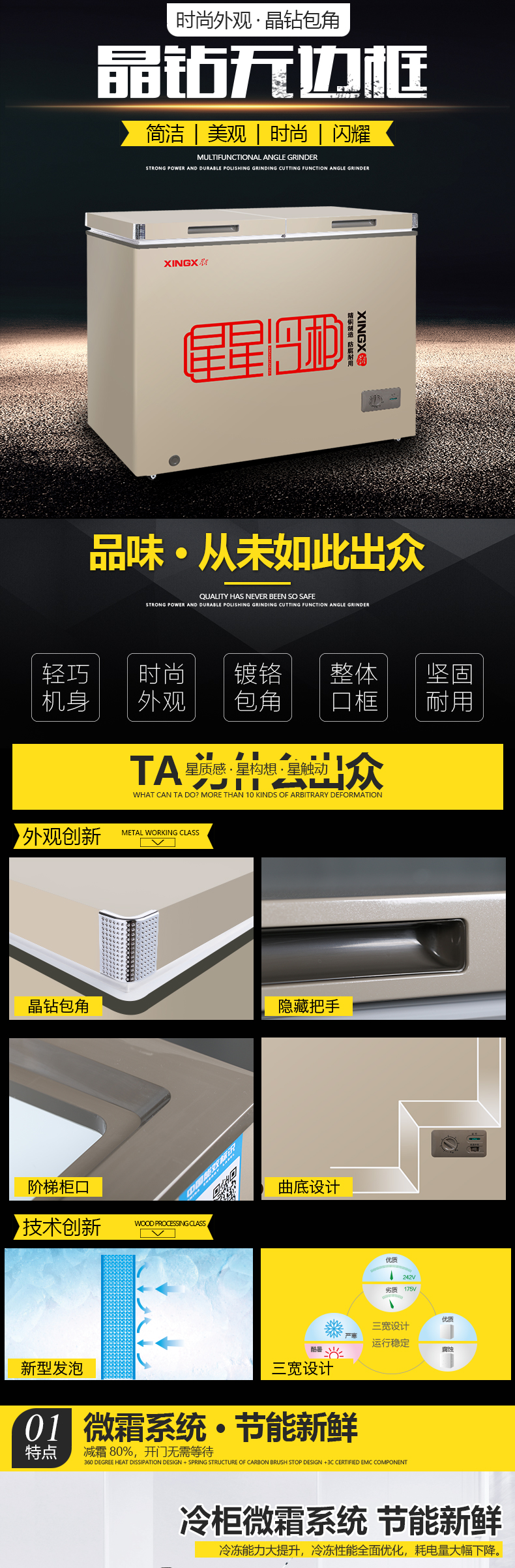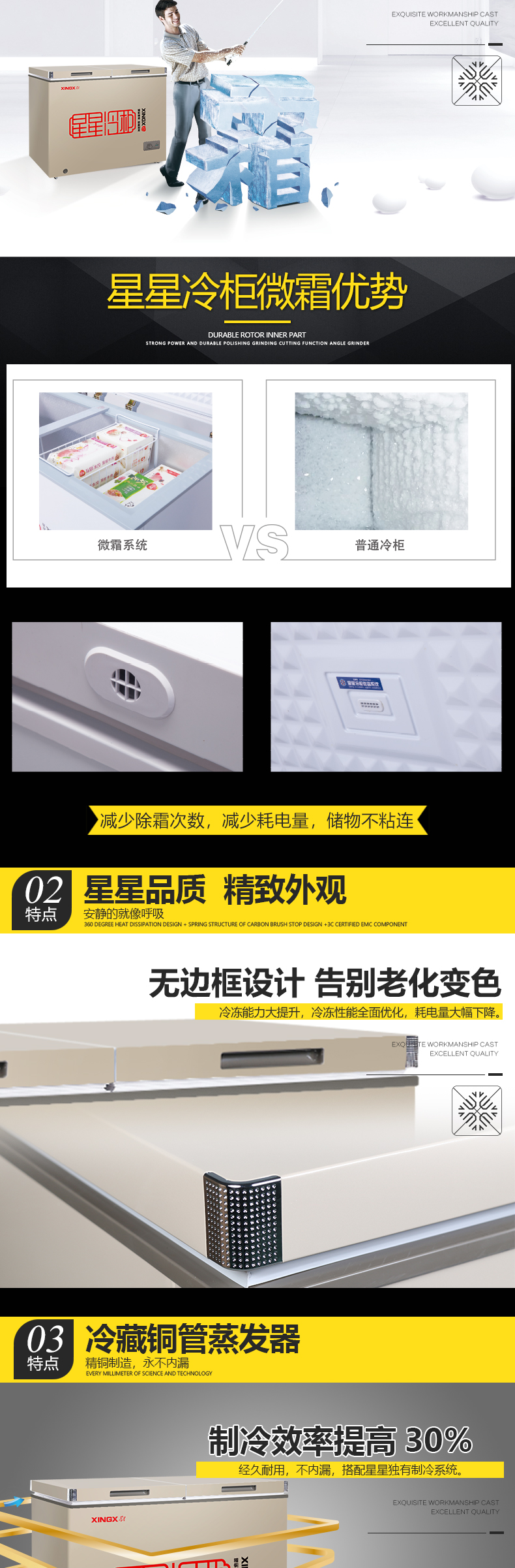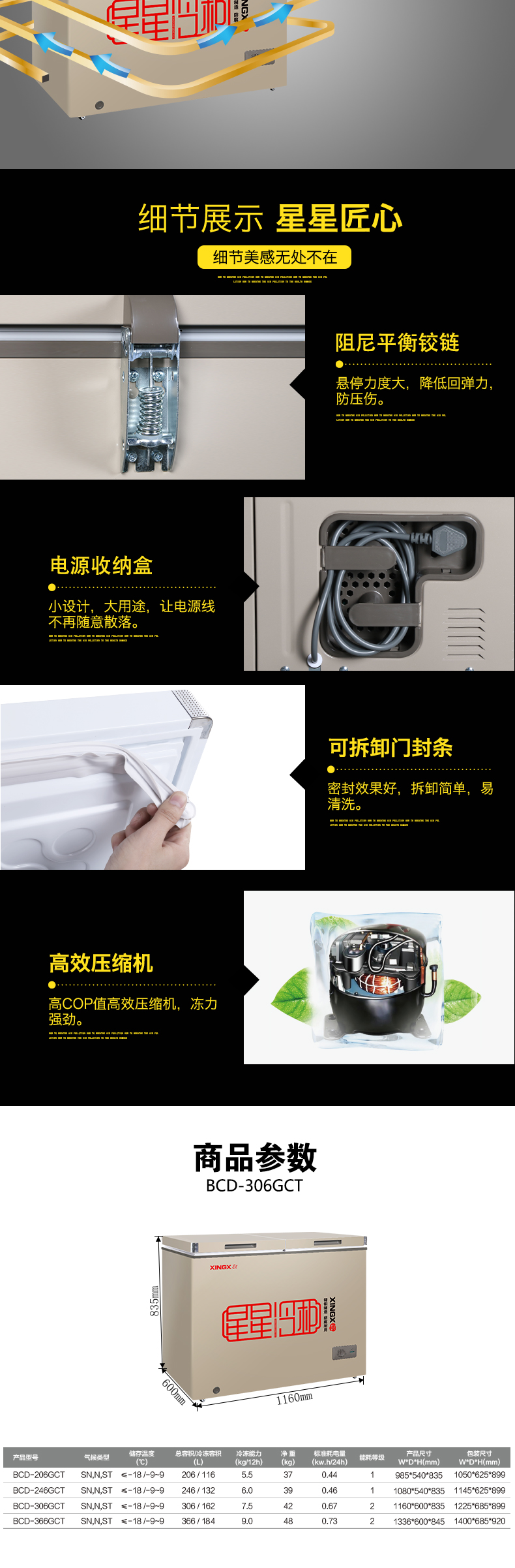 商品名称:星星(XINGX)双温铜管冷柜 BCD-306GCT(单位:台) 流光金