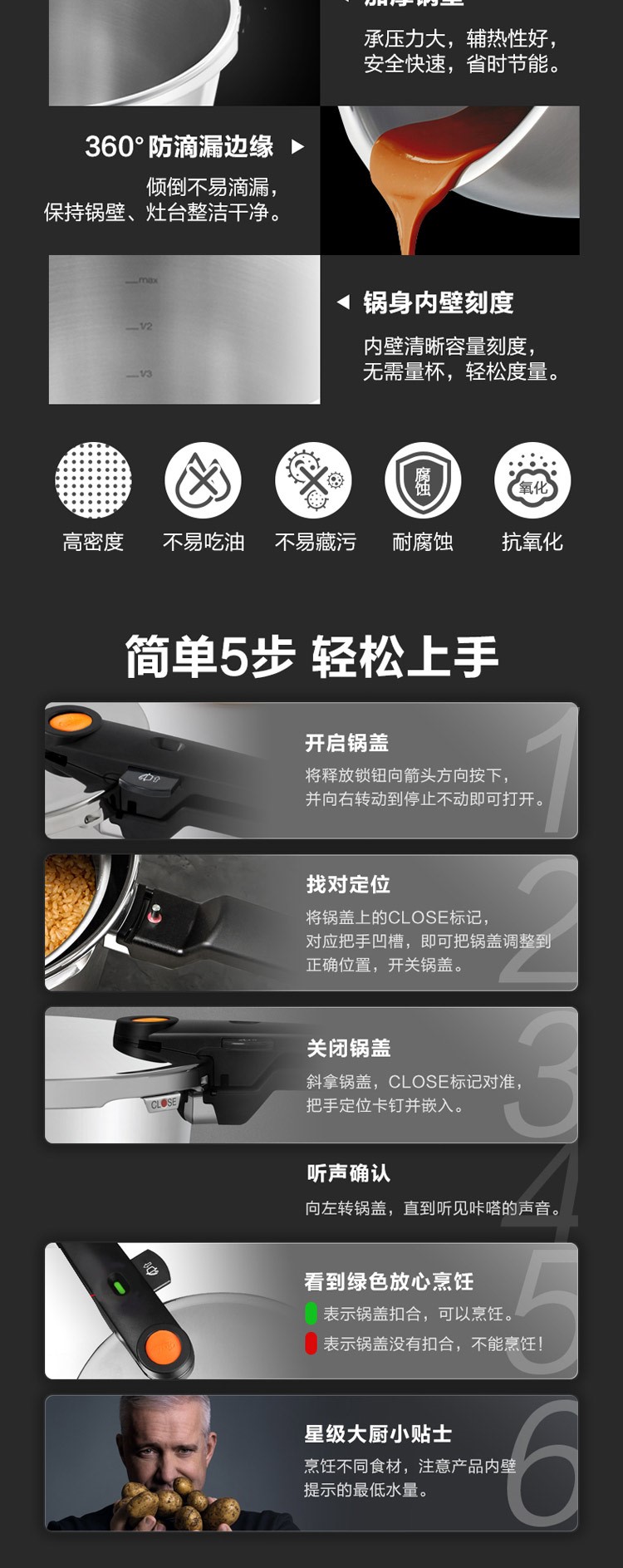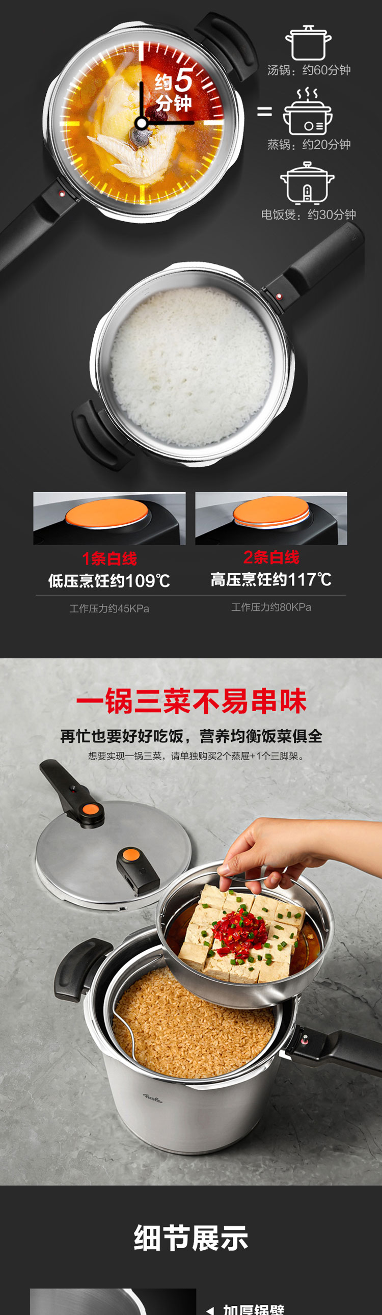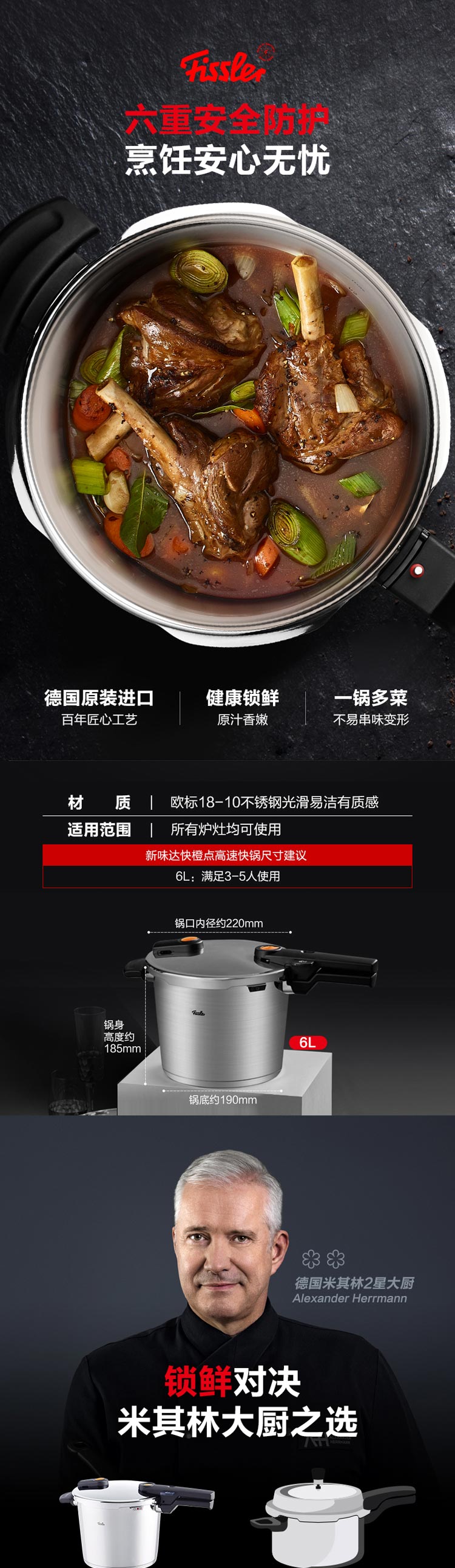 商品名称:菲仕乐Fissler 德国进口橙色沸点22厘米6L高速快锅 单位:个 不锈钢色
