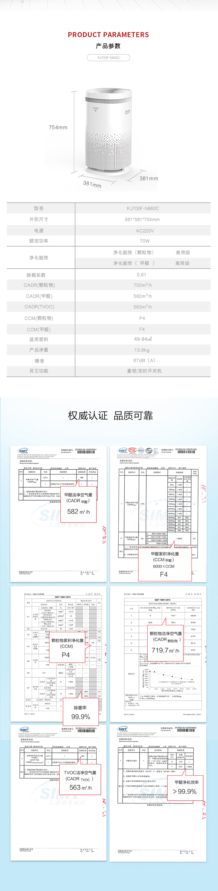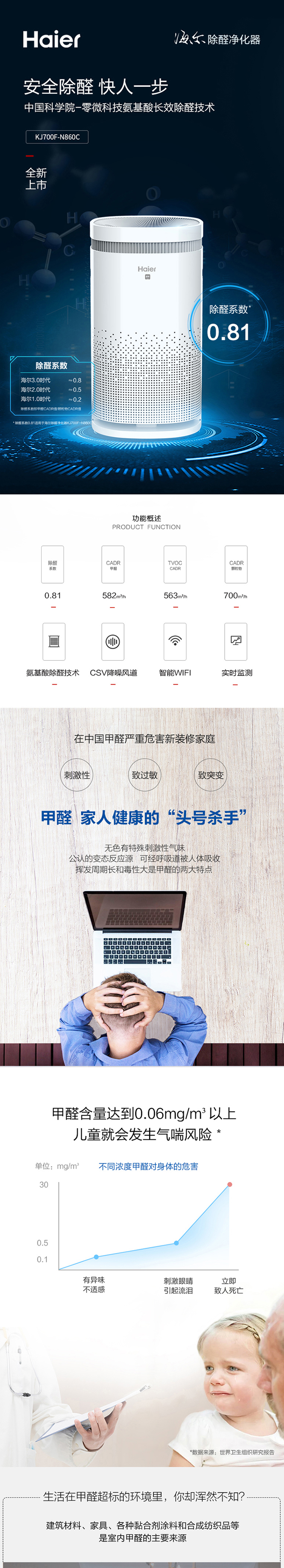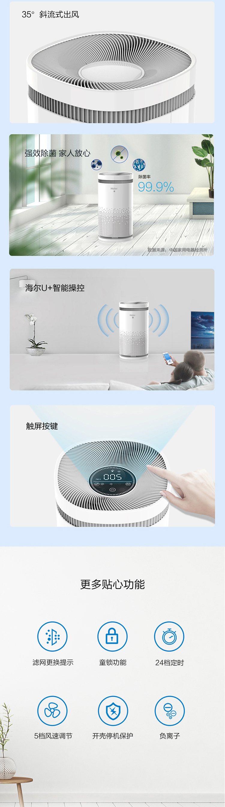 商品名称:海尔空气净化器 KJ700F-N860C 滤网更换提示 24档定时 5档风速调节(单位:台) 白色