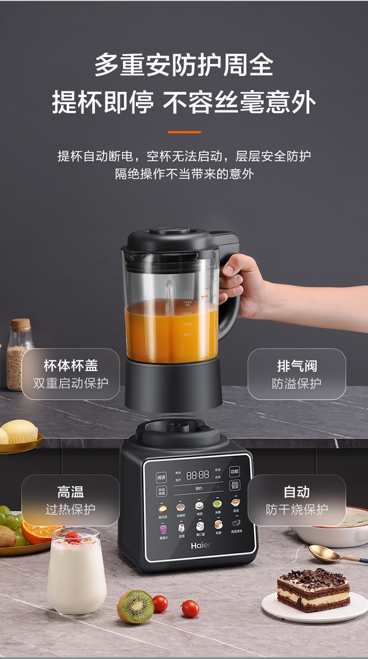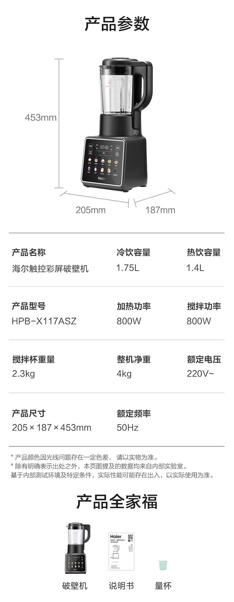 商品名称:海尔 HPB-X117ASZ 智能触控彩屏破壁机(单位:台) 邃空黑