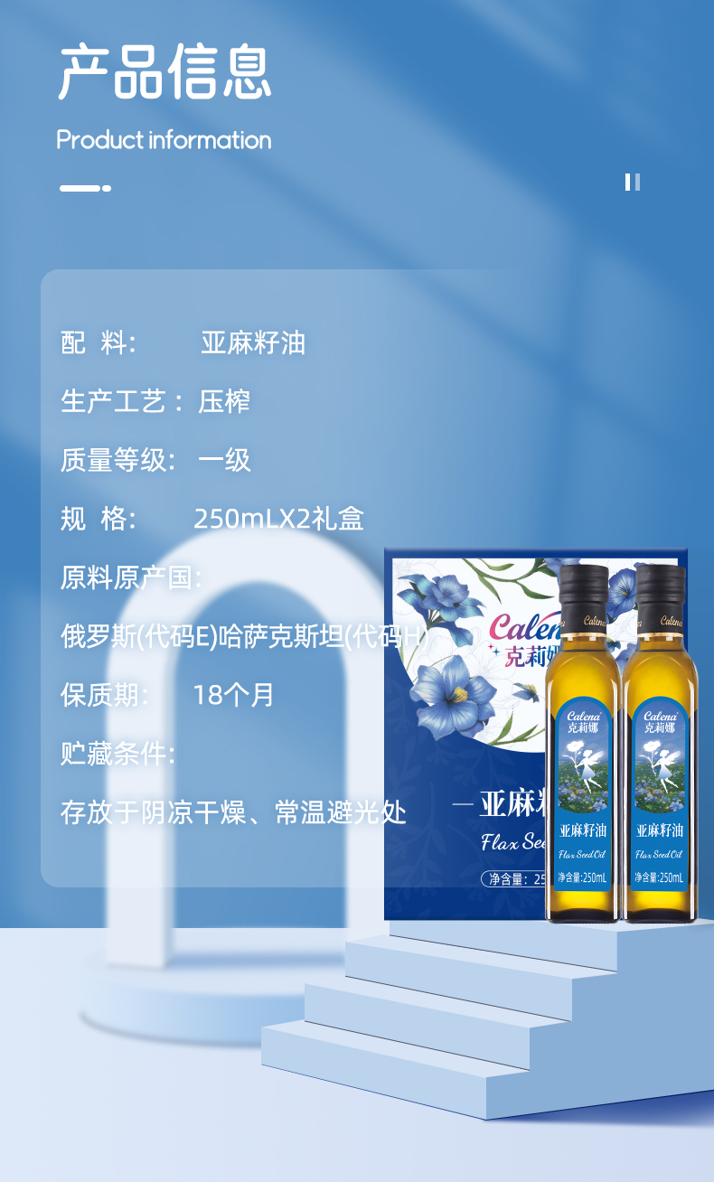 商品名称:克莉娜亚麻籽油250ML*2礼盒 250ML*2礼盒