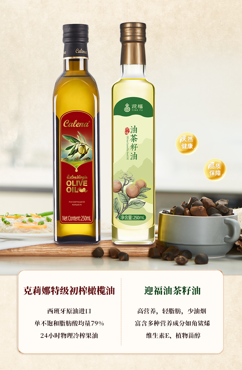 商品名称:克莉娜特级初榨橄榄油 迎福油茶籽油250ML*2 250ML*2礼盒