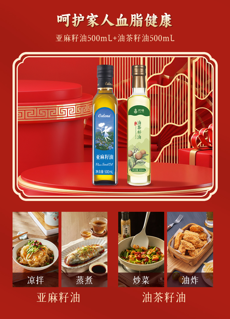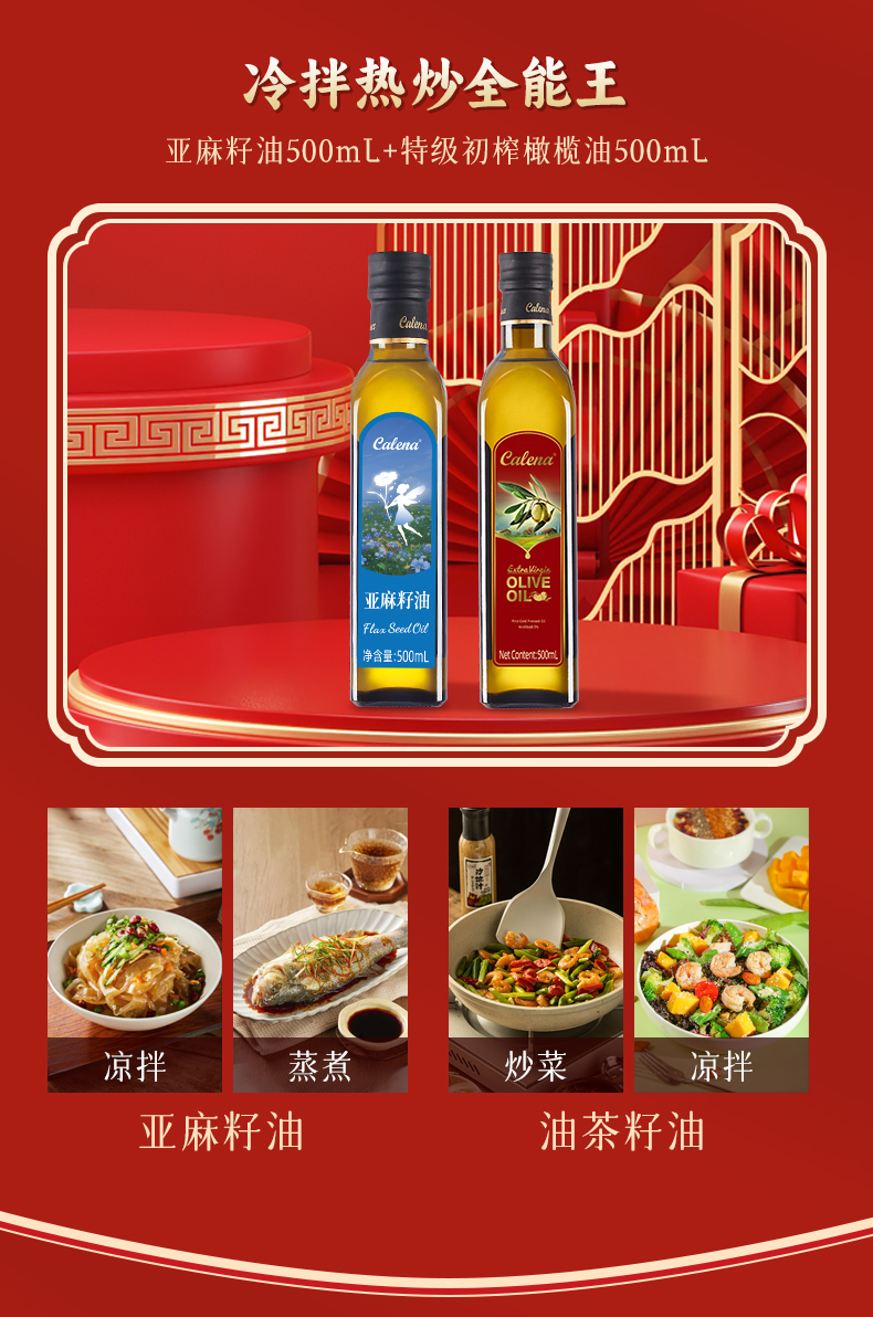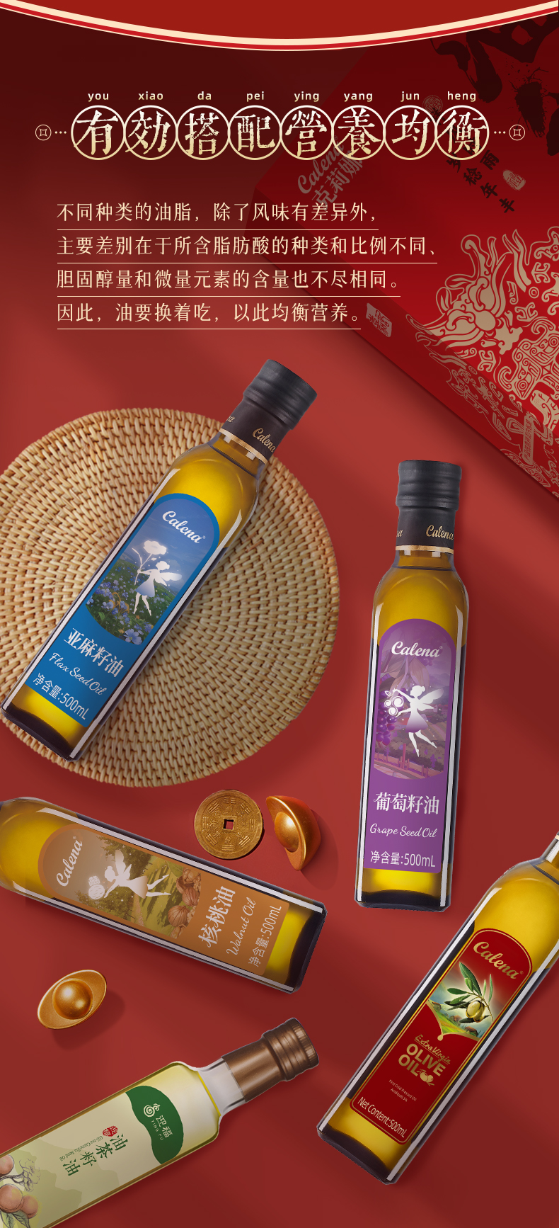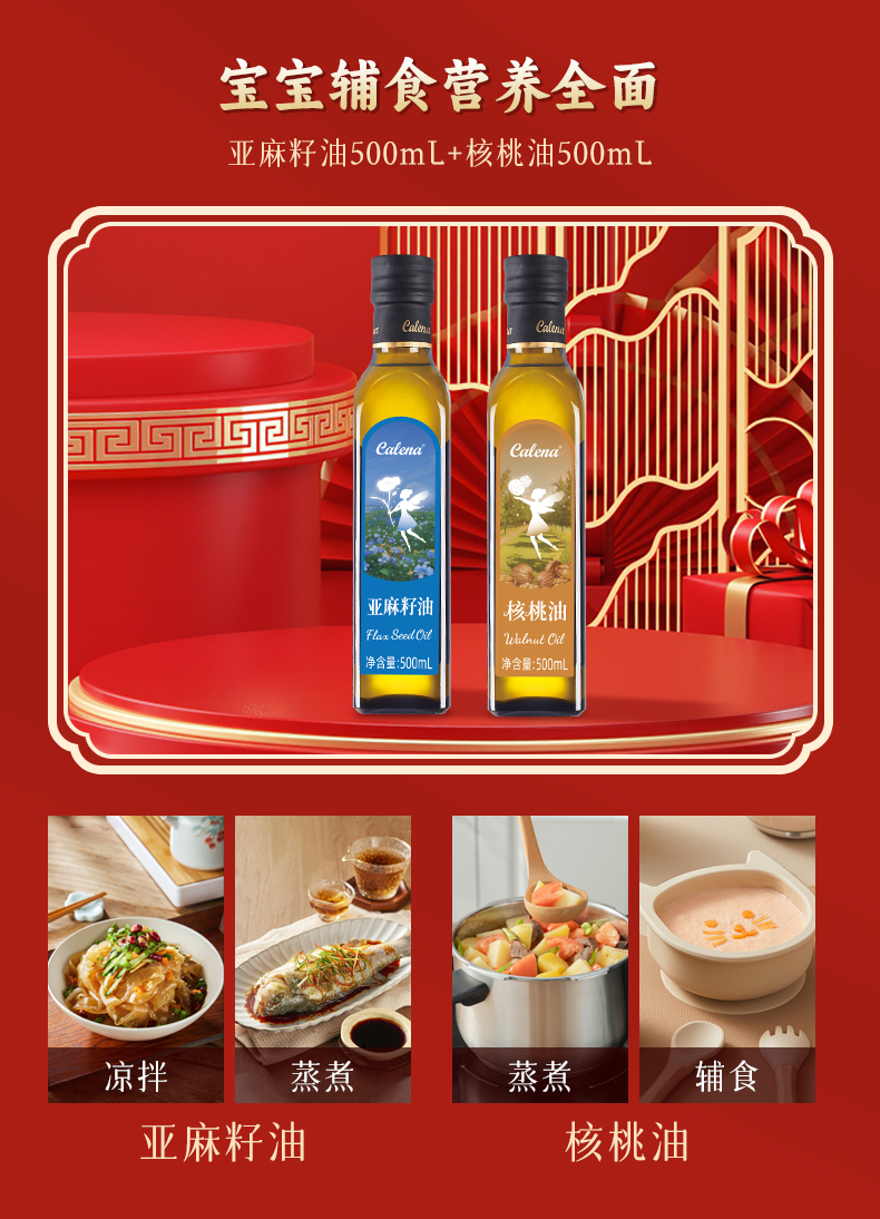 商品名称:克莉娜 新春油礼(亚麻籽油+葡萄籽油/ 500ml*2)(亚麻籽油+葡萄籽油/ 500ml*2) 盒 亚麻籽油+葡萄籽油 500ml*2礼盒