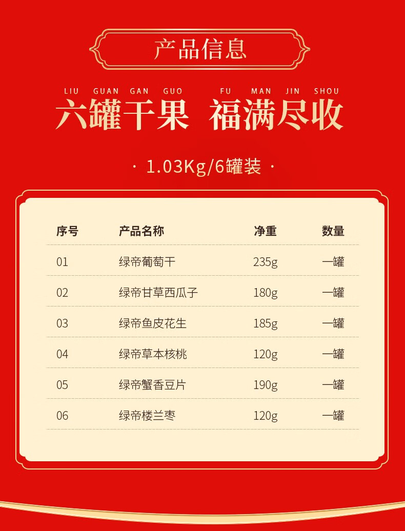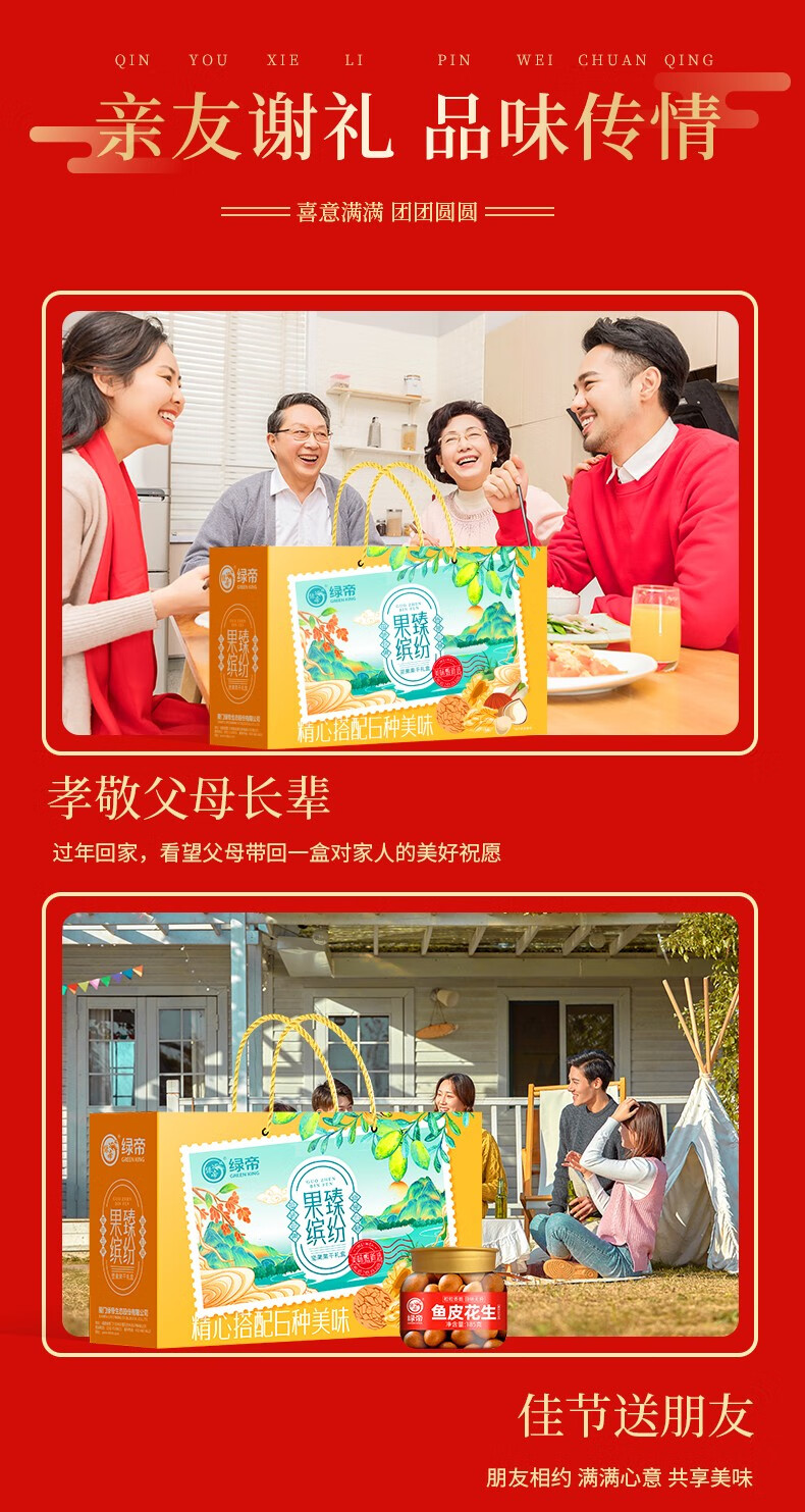商品名称:绿帝果臻缤纷坚果果干精品礼盒1030g 单位:盒 黄色