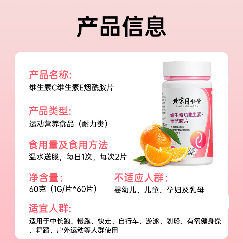 商品名称:北京同仁堂诚安维生素C维生素E烟酰胺片60g*1瓶 60g*1瓶