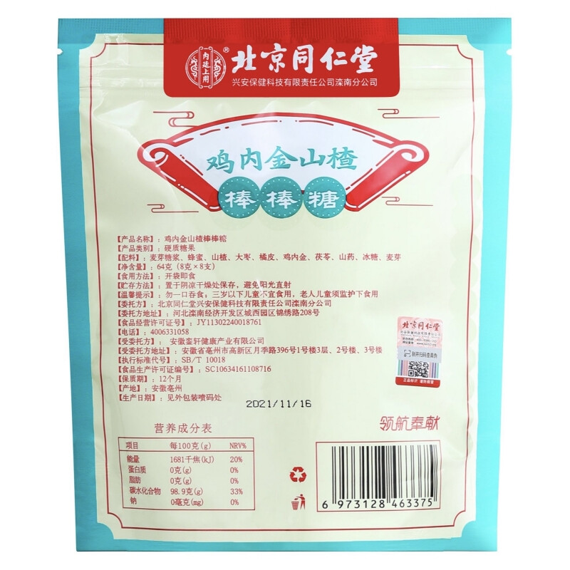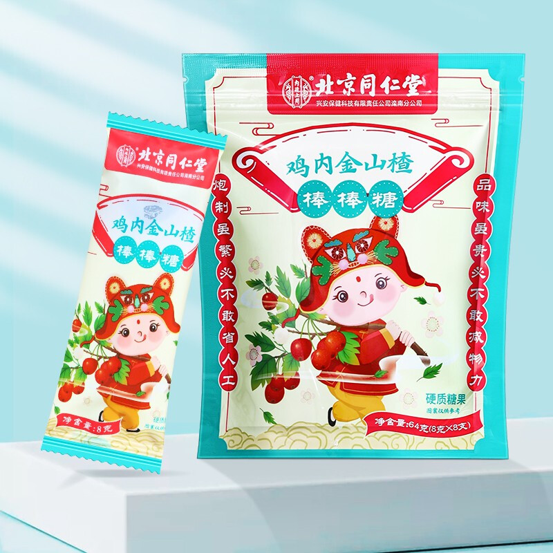 商品名称:北京同仁堂内廷上用鸡内金山楂棒棒糖64克(8克x8支)*1盒 (8克x8支)*1盒