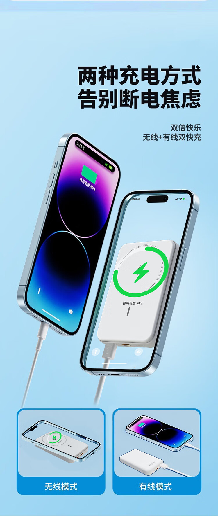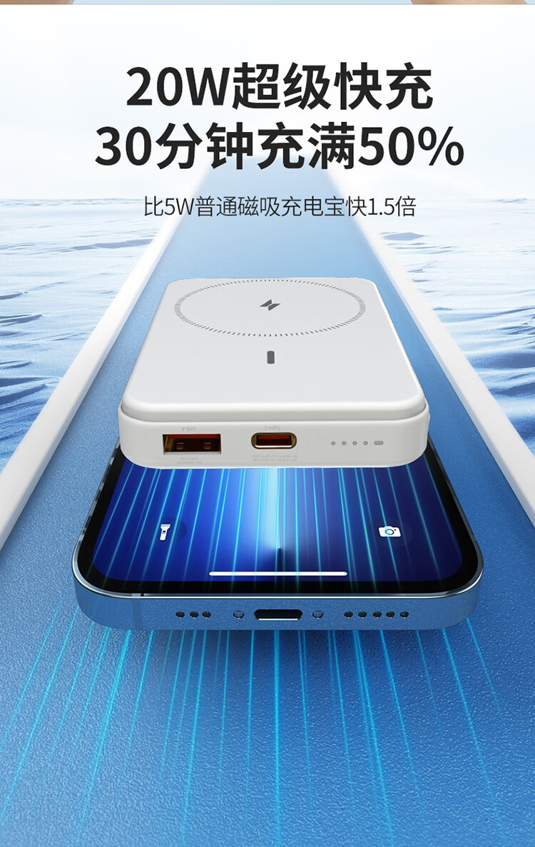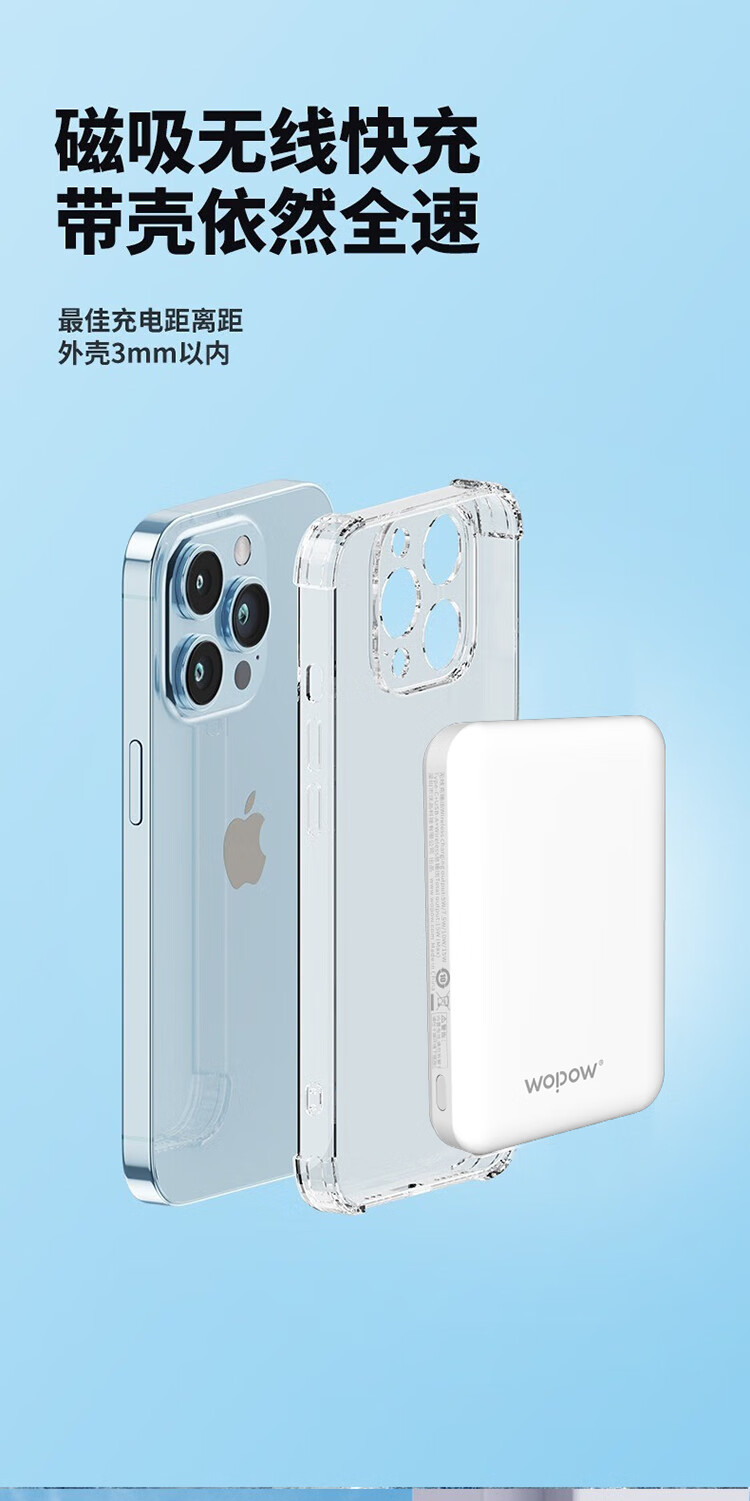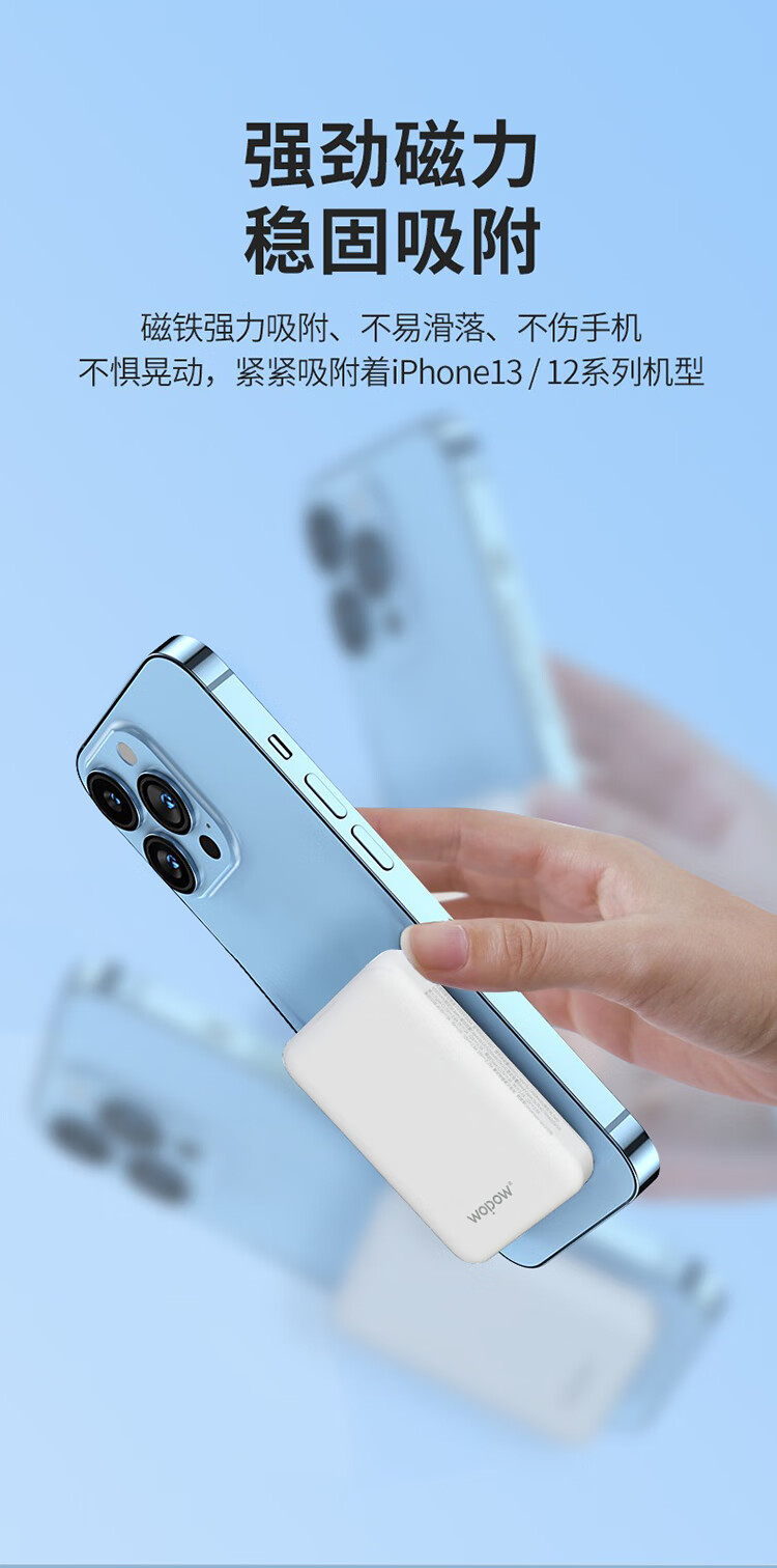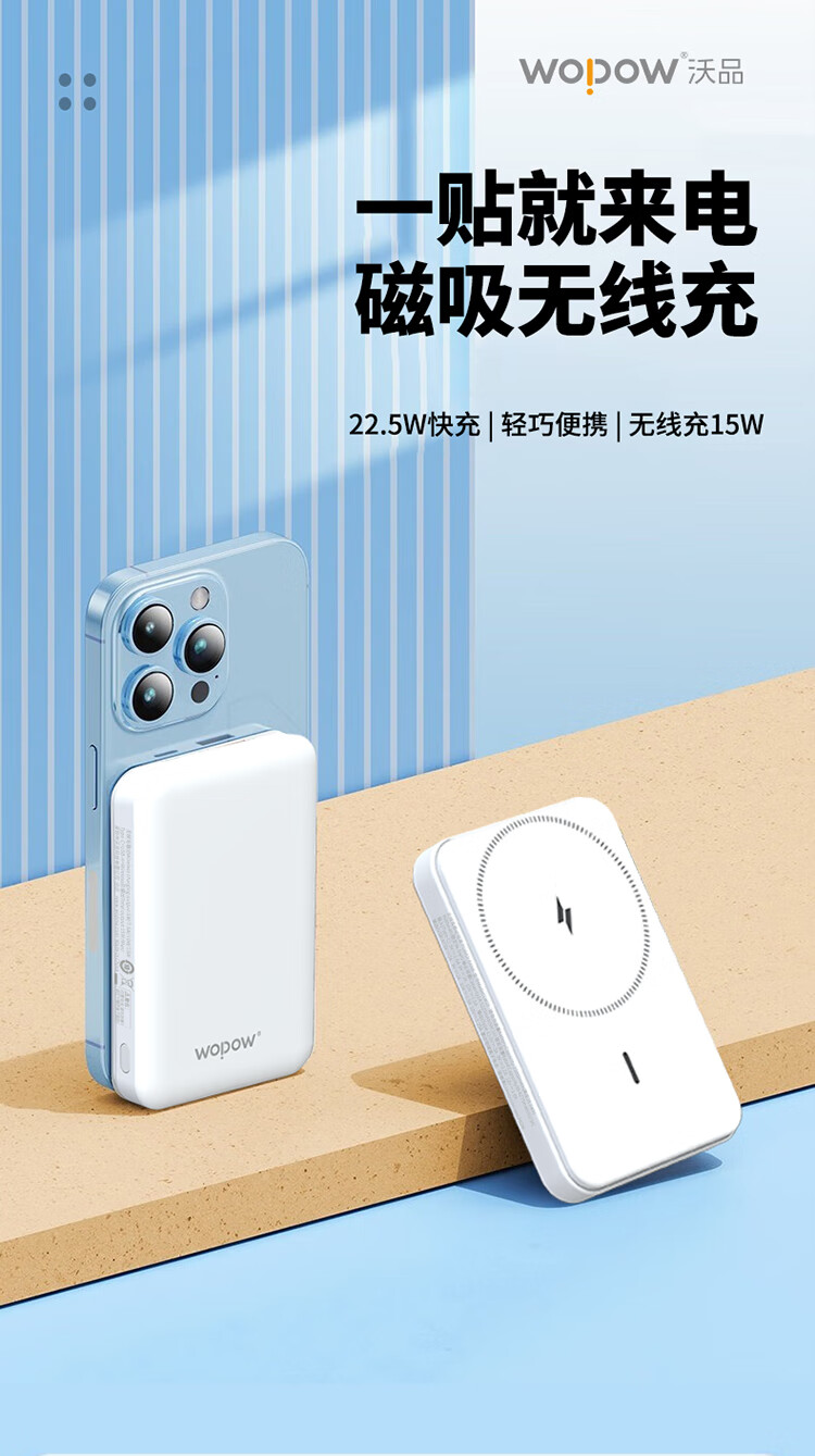 商品名称:WOPOW 沃品 便携小巧磁吸22.5W快充户外移动电源 LW05 单位:个 白色