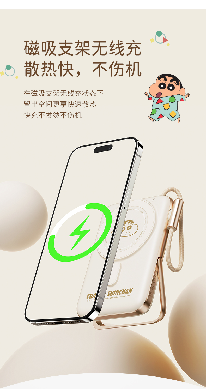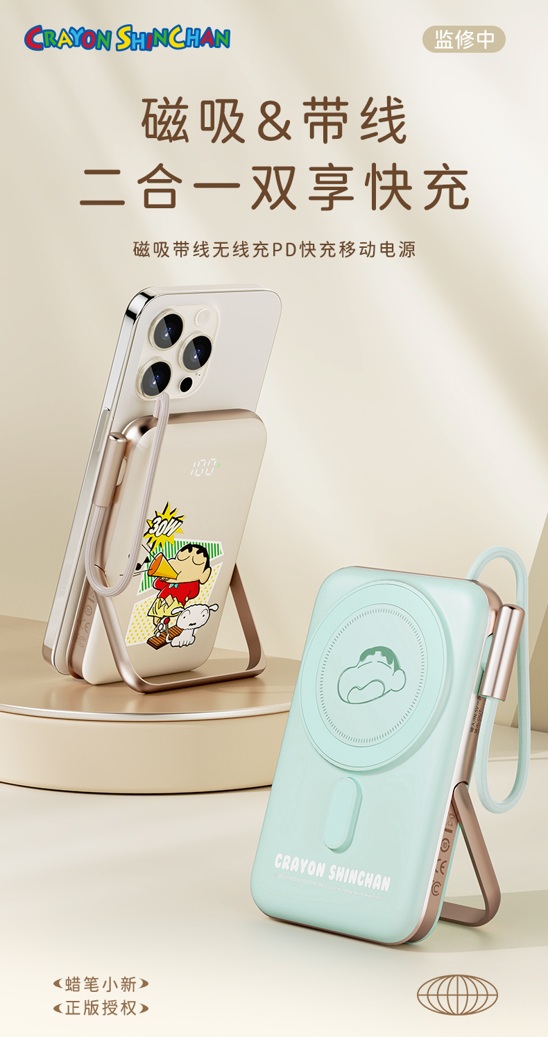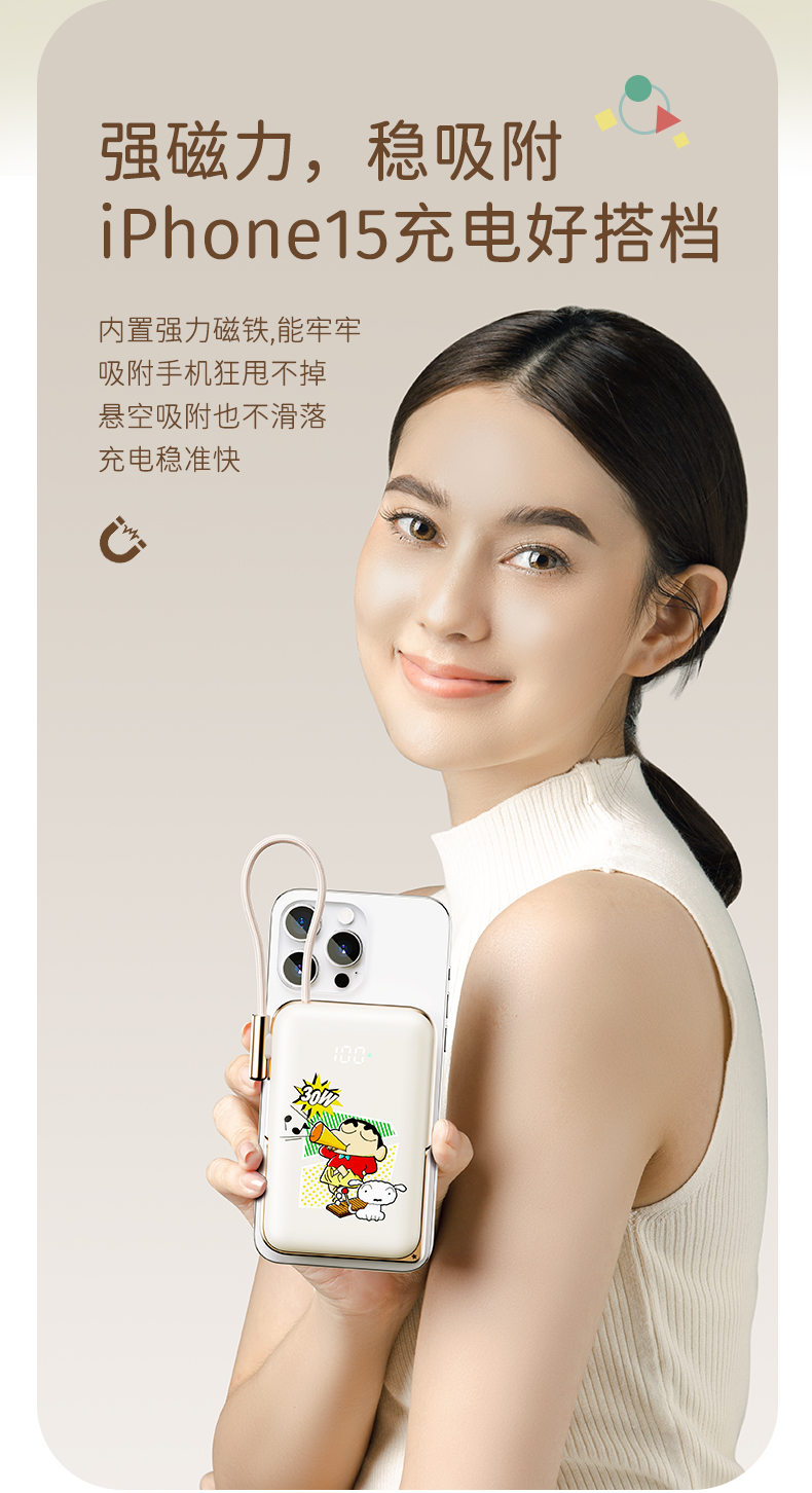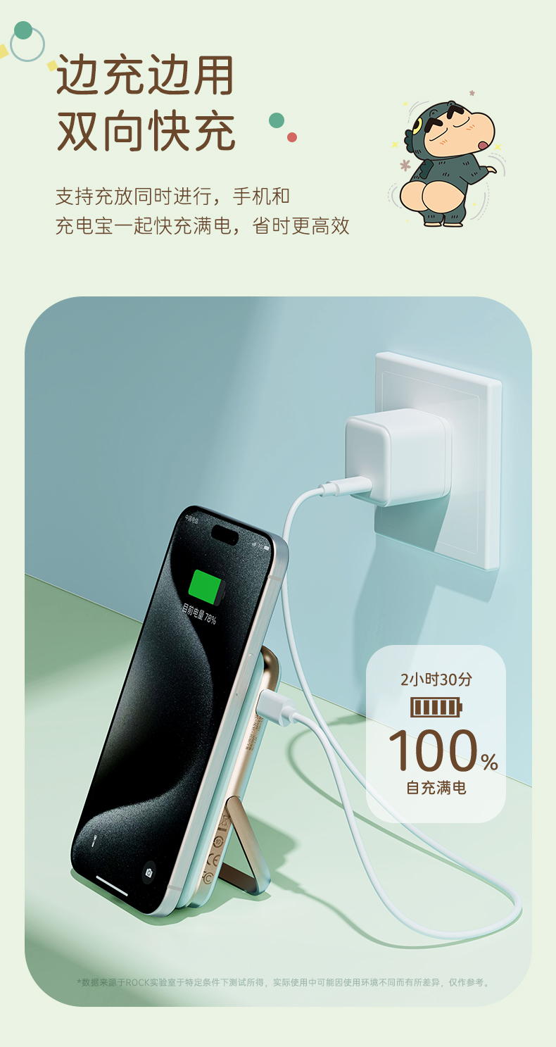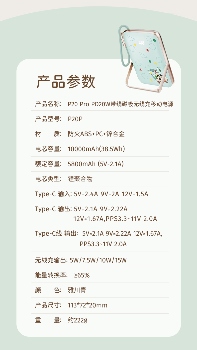 商品名称:ROCK 蜡笔小新 P20/P30Pro PD20W磁吸无线充PD快充移动电源 带线款 单位:个 雅川青