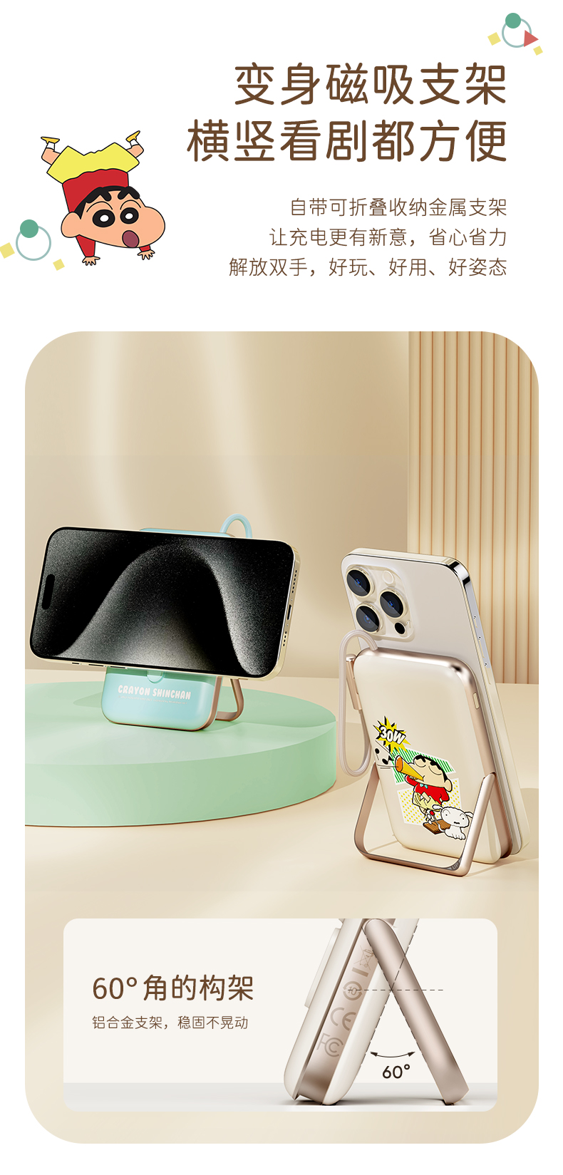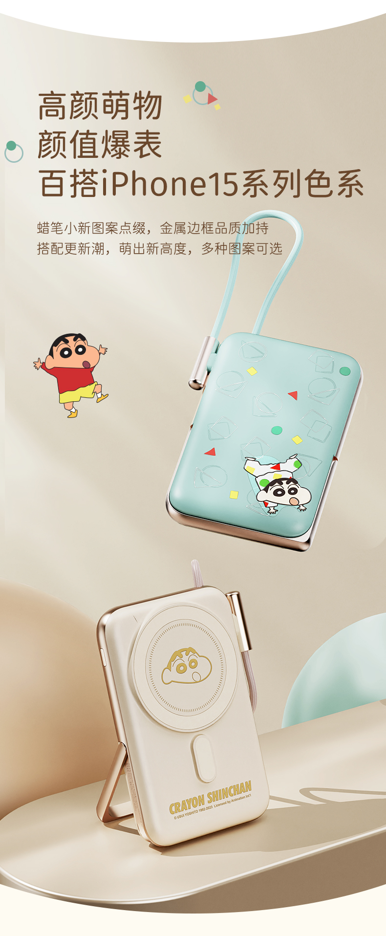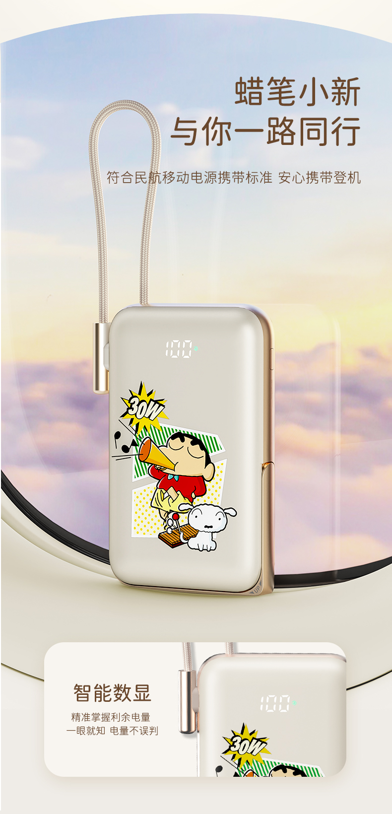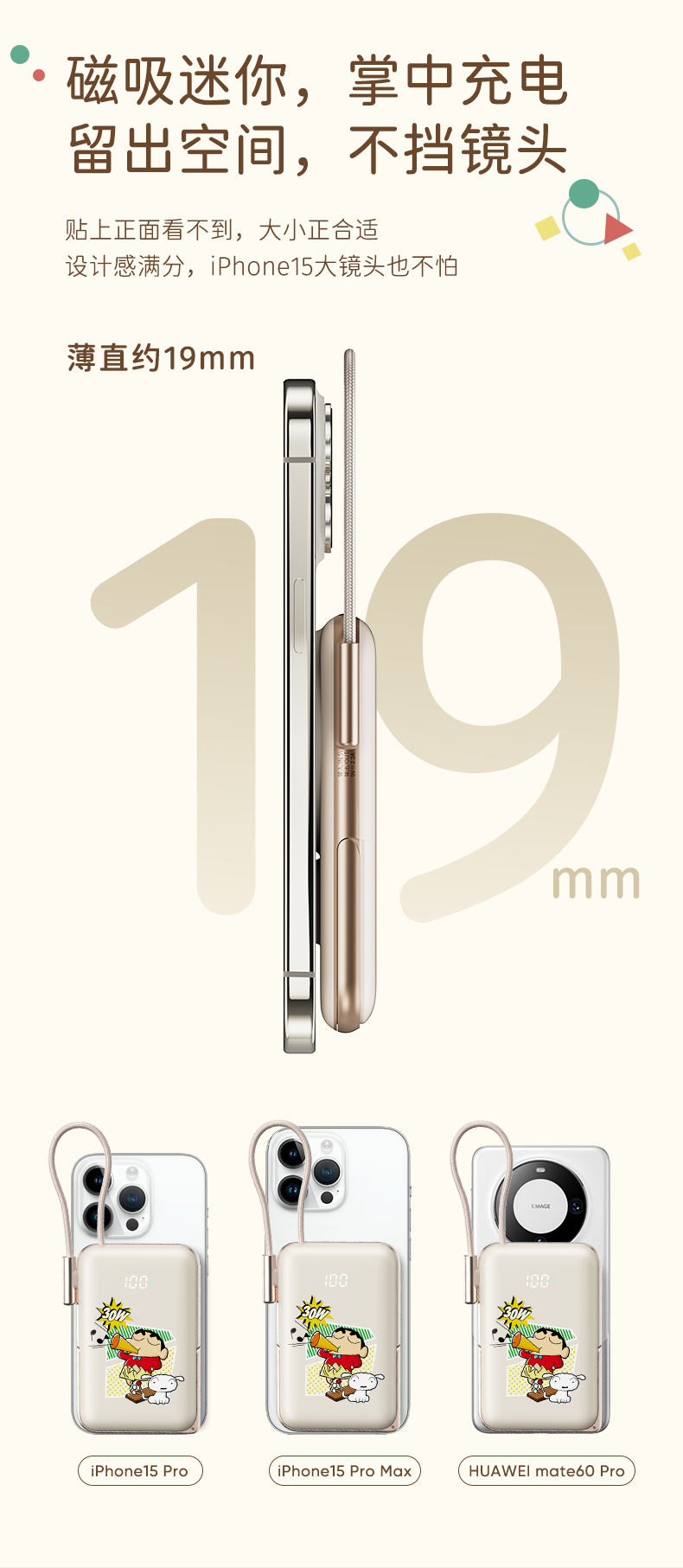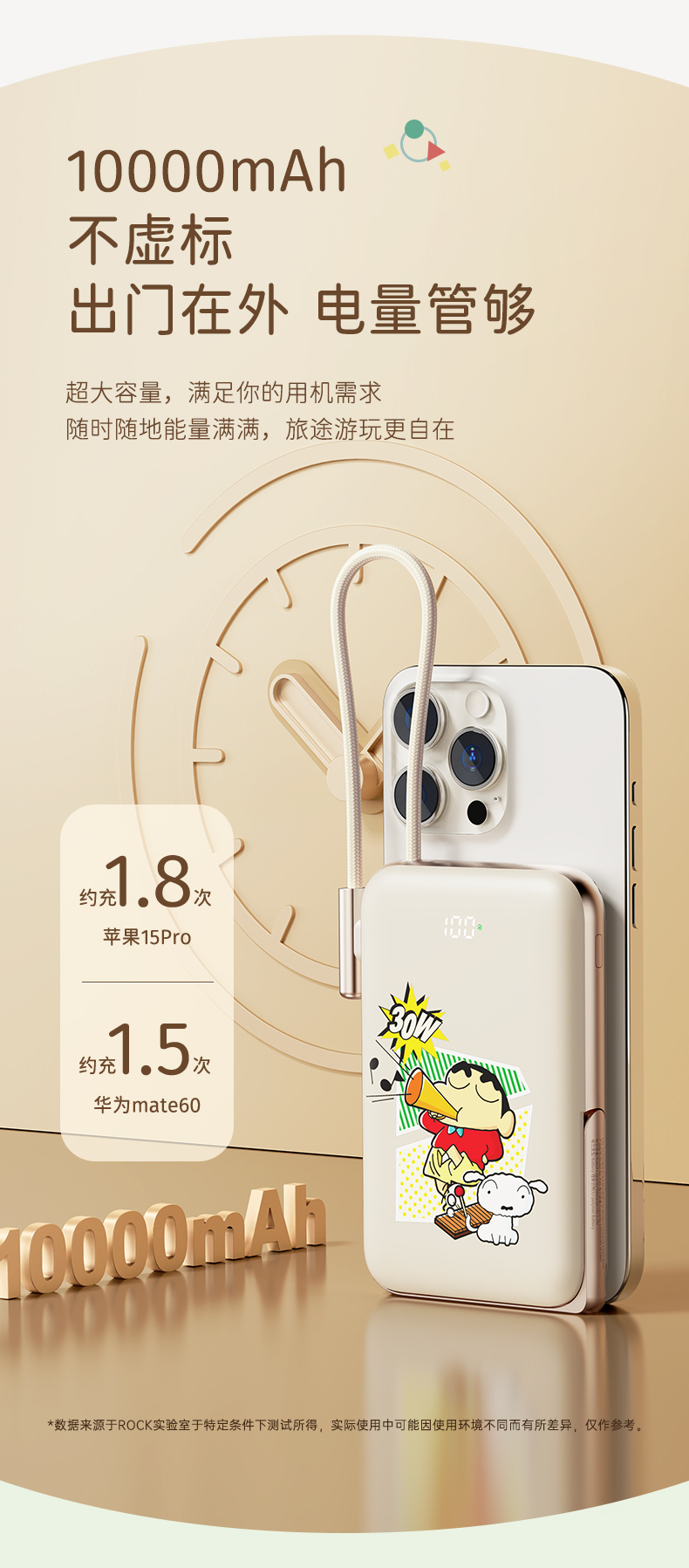 商品名称:ROCK 蜡笔小新 P20/P30Pro PD20W磁吸无线充PD快充移动电源 带线款 单位:个 雅川青