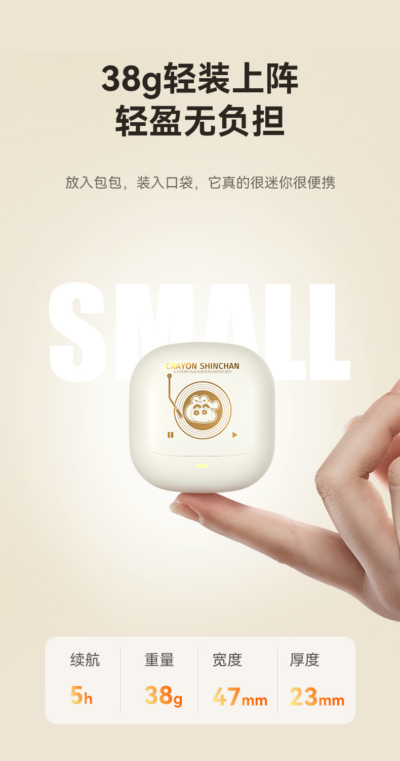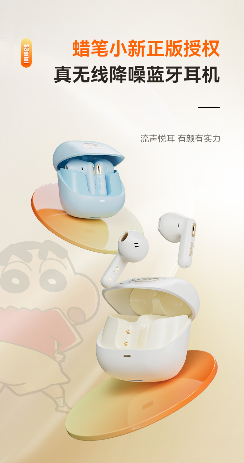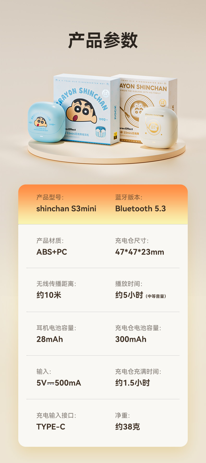 商品名称:ROCK 蜡笔小新 S3mini 无线ENC降噪蓝牙耳机 shinchan S3mini 单位:个 蓝色
