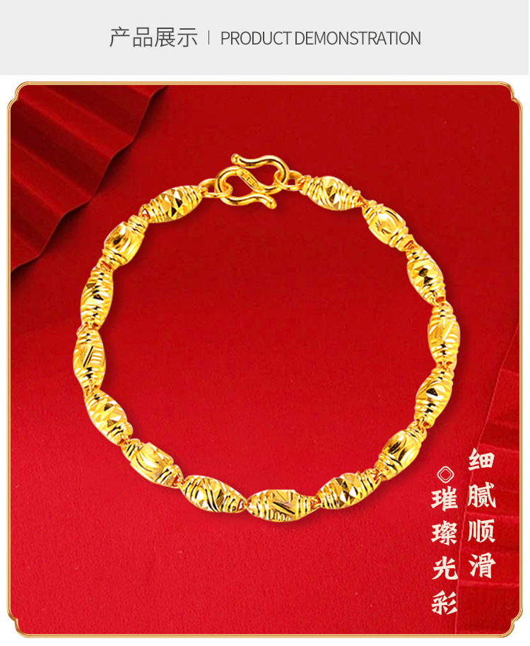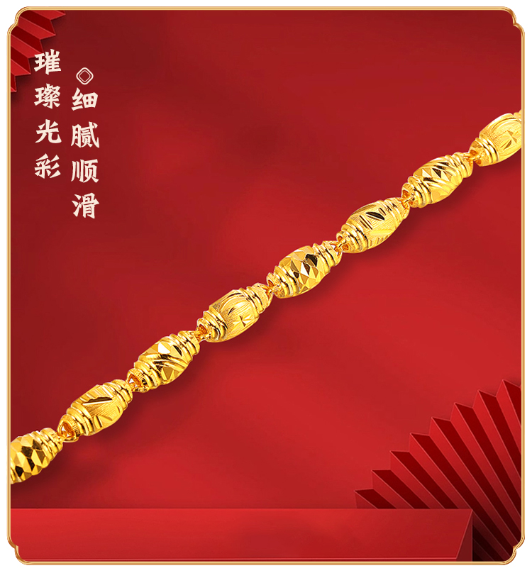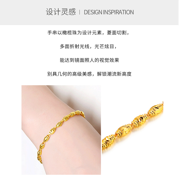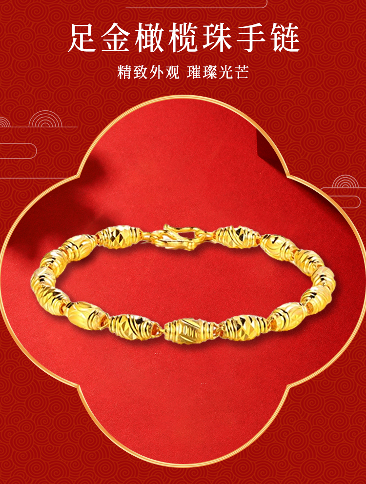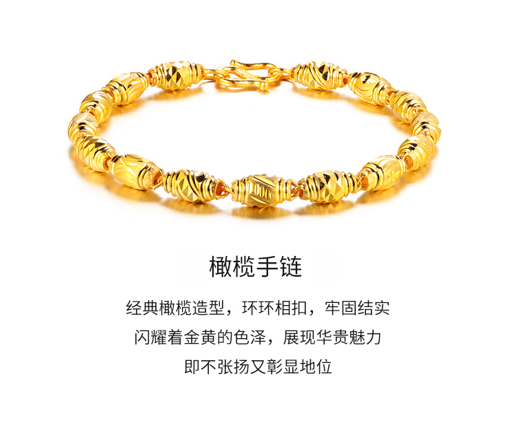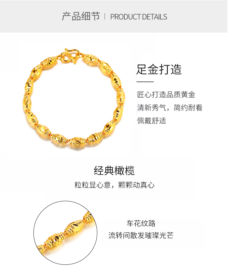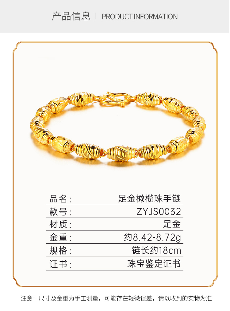 商品名称:周贝贝珠宝 橄榄珠 黄金足金999男女款手链 ZYJS0032 单位:件 金色