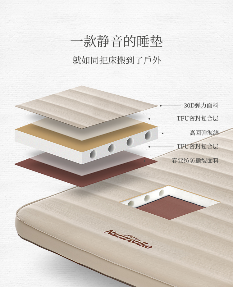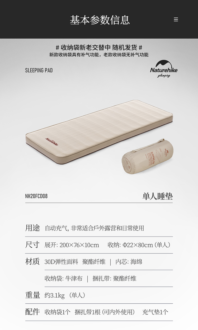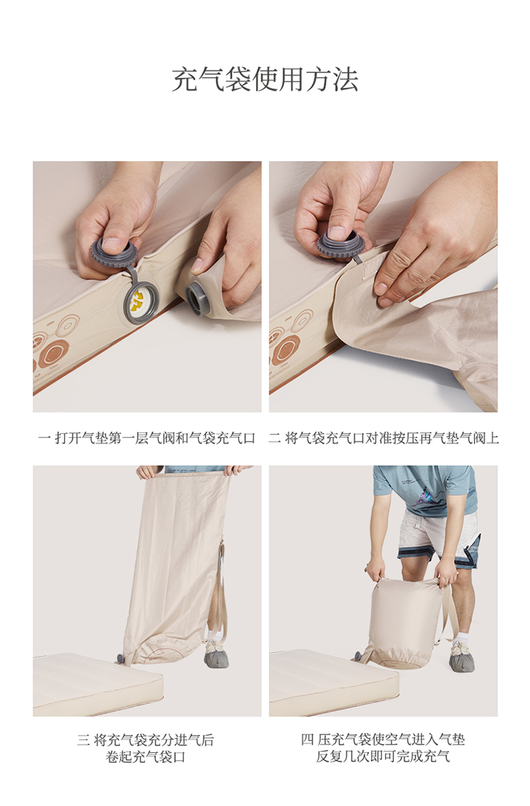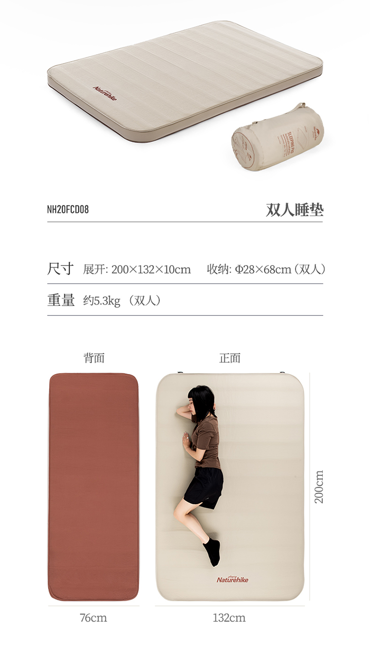 商品名称:NatureHike挪客NH20FCD08自动充气垫户外帐篷睡垫气垫床(单位:张) 杏仁黄双人