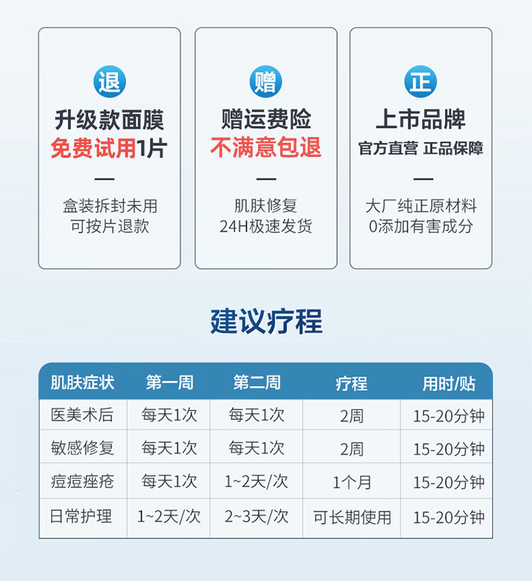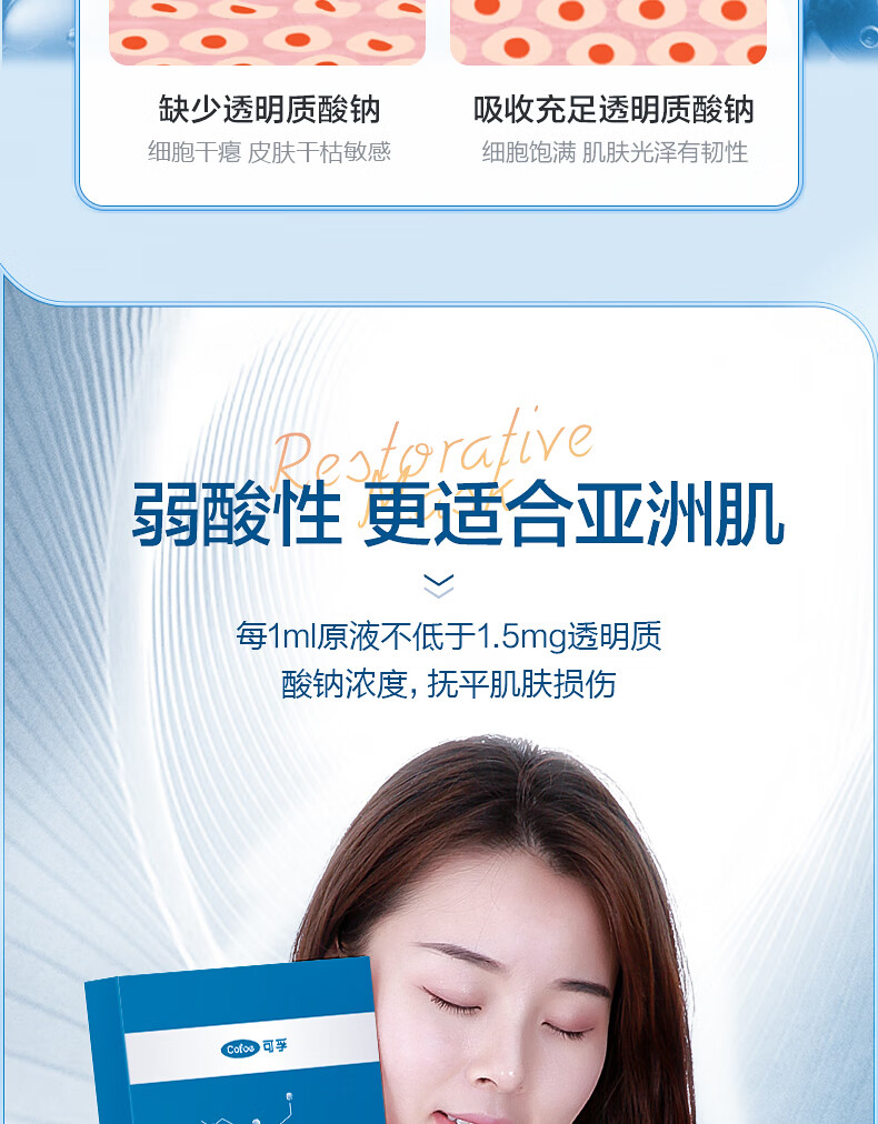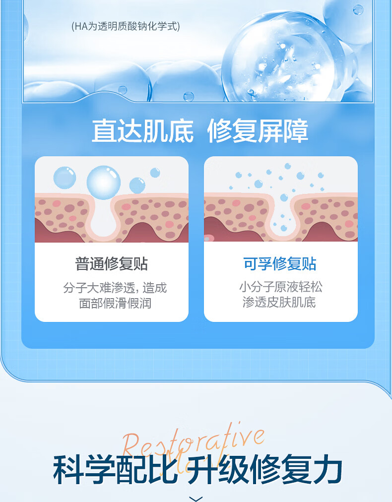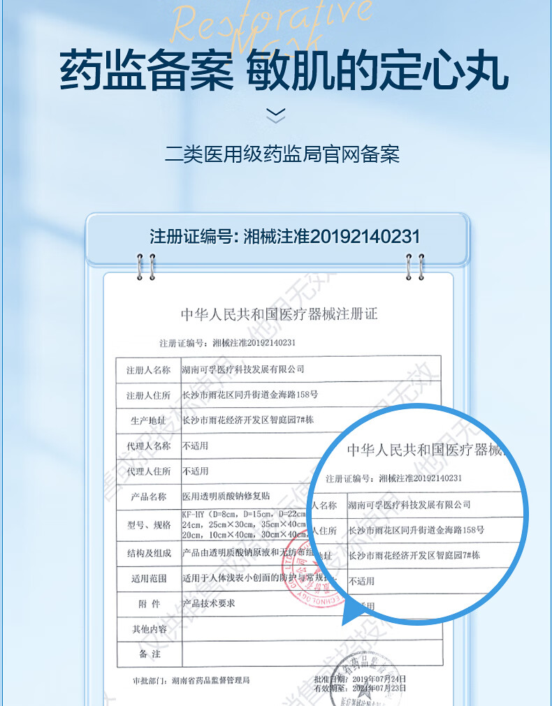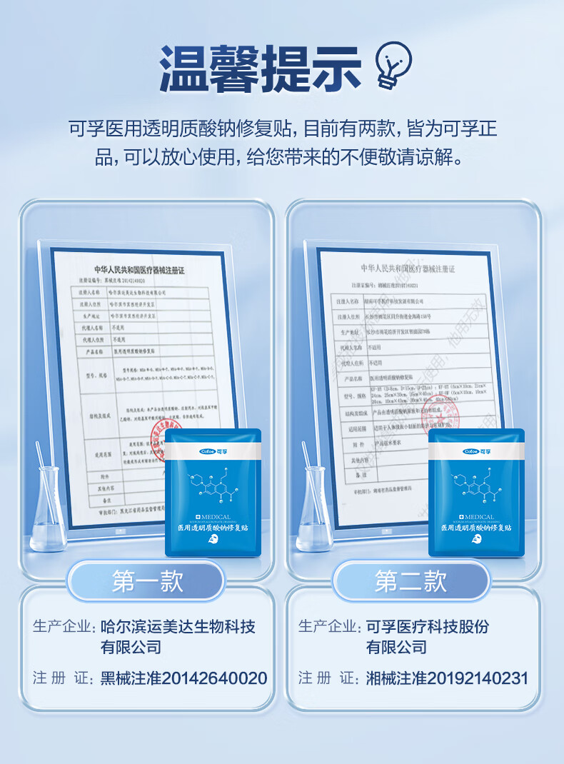 商品名称:可孚医用透明质酸钠修复贴 KF-HT(21cmX24cm)-5片/盒(白膜)