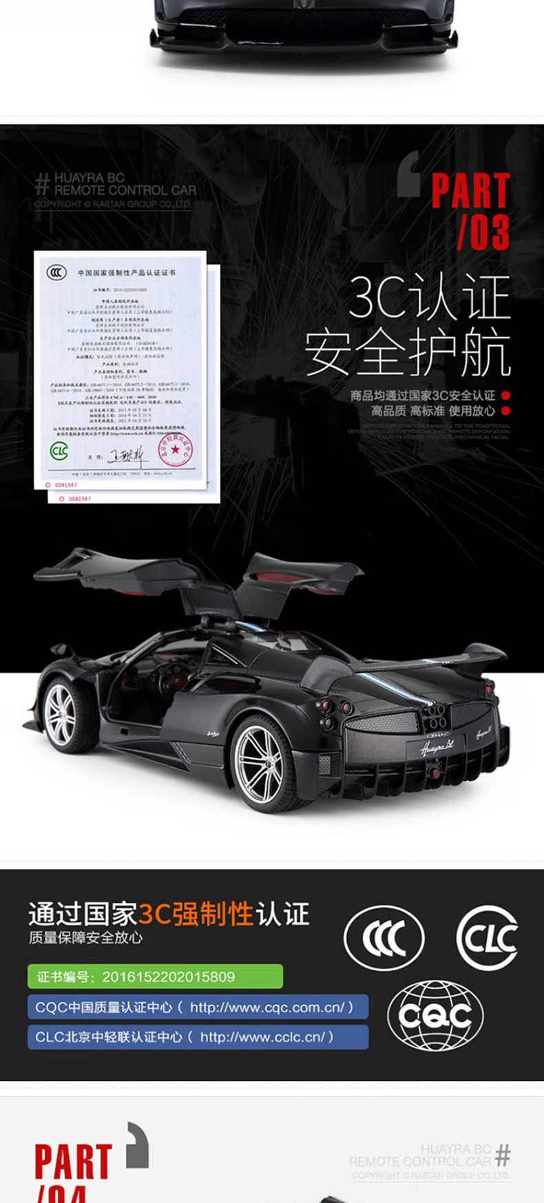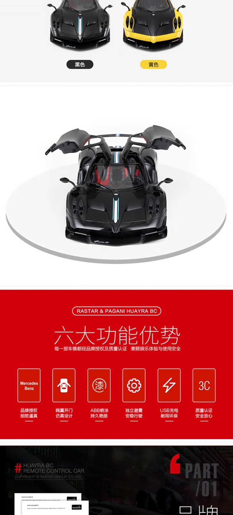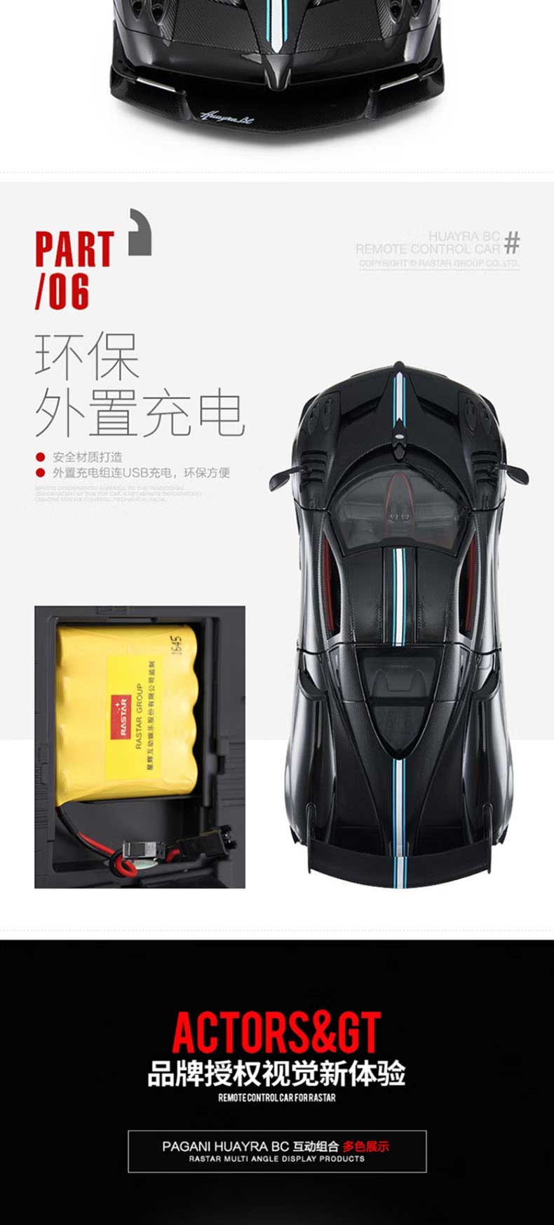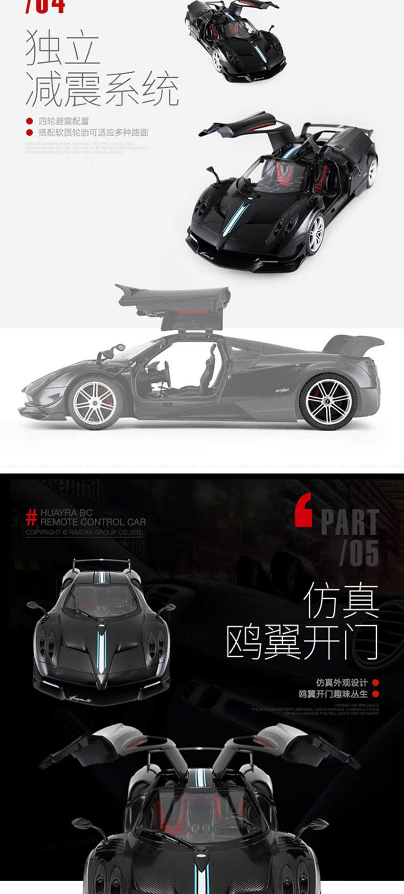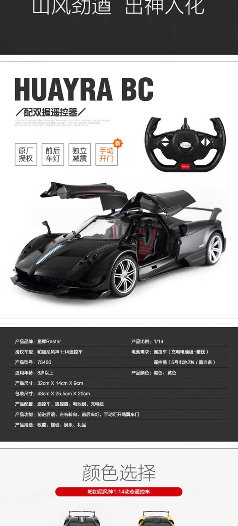 商品名称:rastar 1:14儿童遥控车玩具车帕加尼风神 75460(单位:辆) 黑色