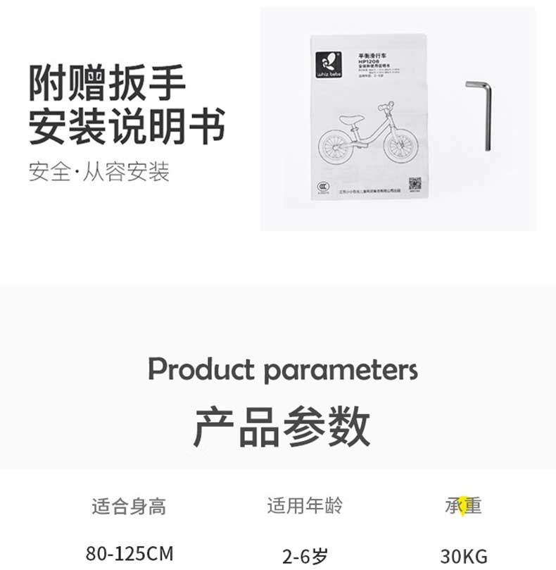 商品名称:荟智(Huizhi) 儿童平衡车无脚踏滑行车HP1208(单位:辆) 粉白色