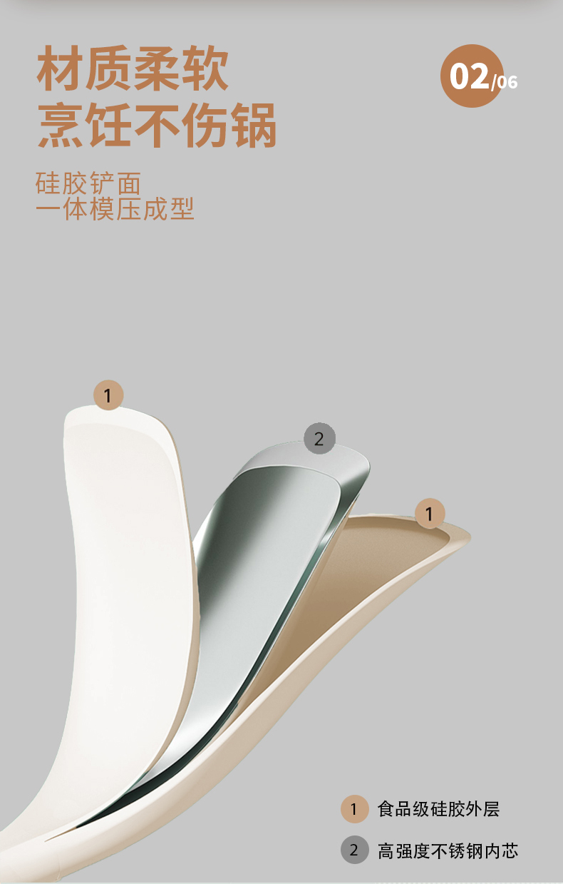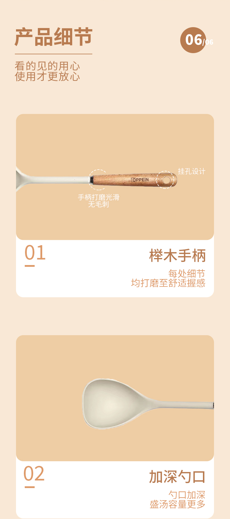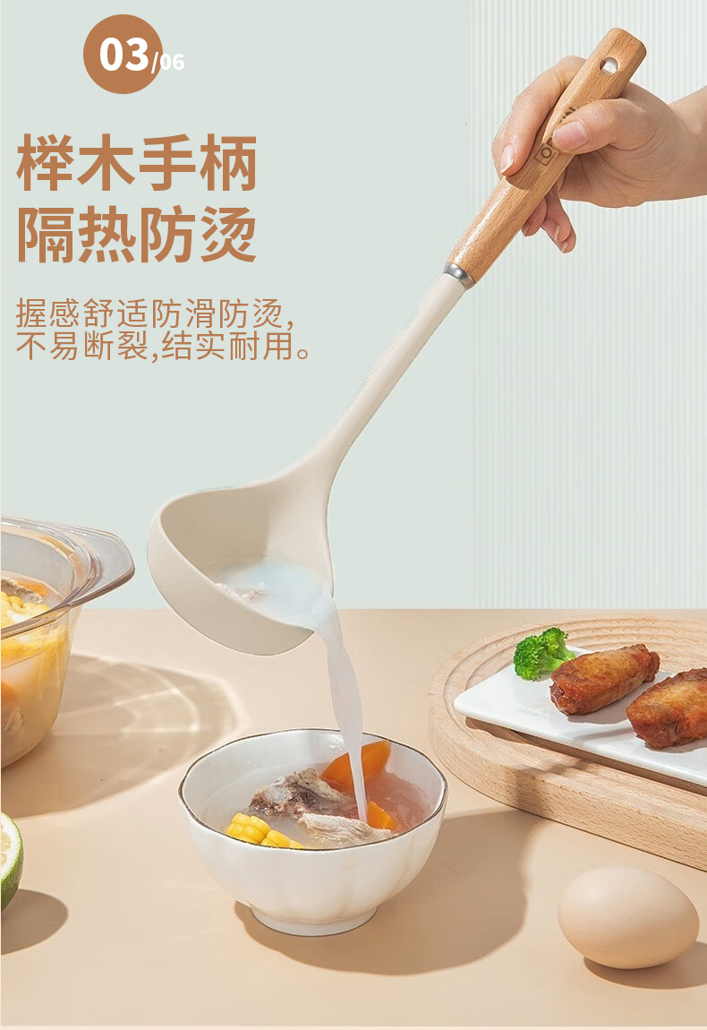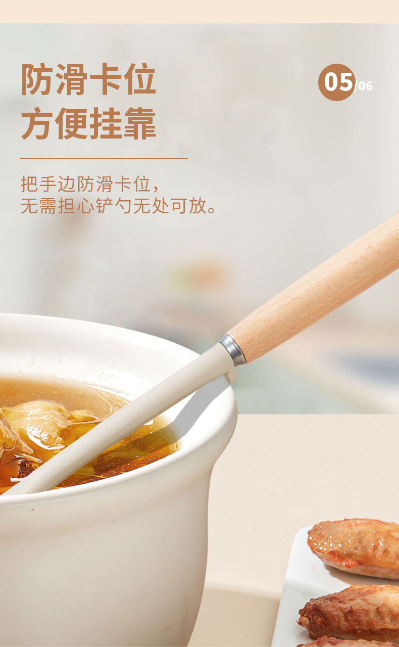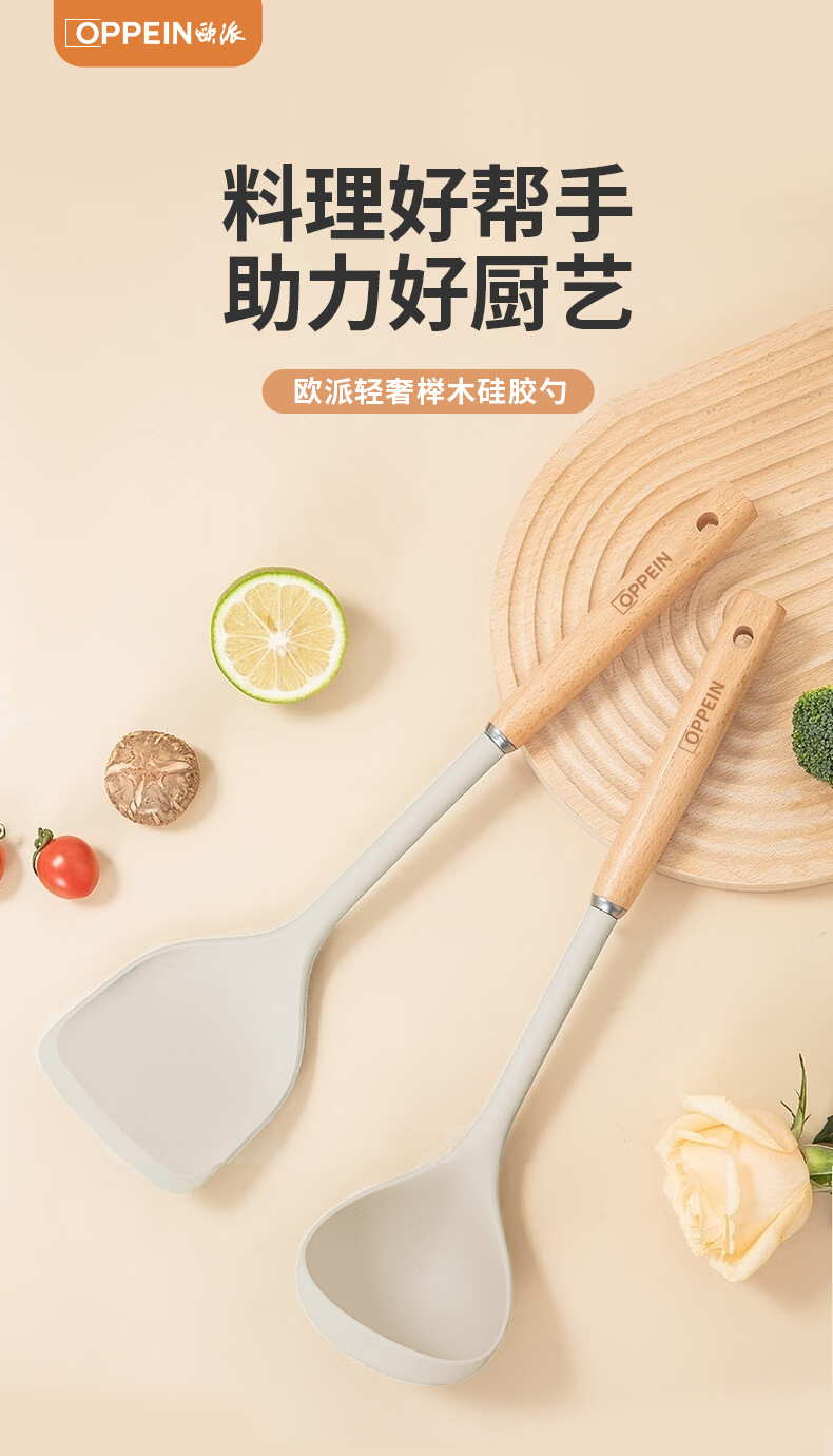 商品名称:欧派OP3TS19轻奢榉木硅胶勺(单位:把) 白色