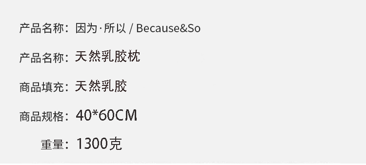 商品名称:因为+所以 / Because & So 天然泰国乳胶枕(1个) 白色