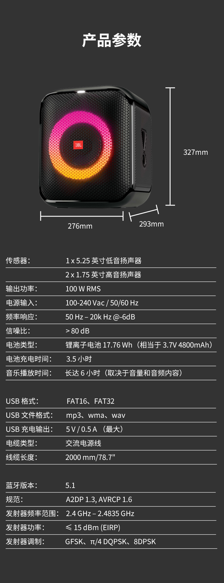 商品名称:JBL Partybox Encore Essential 音乐战将 户外便携音箱 黑色