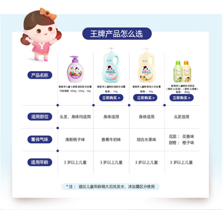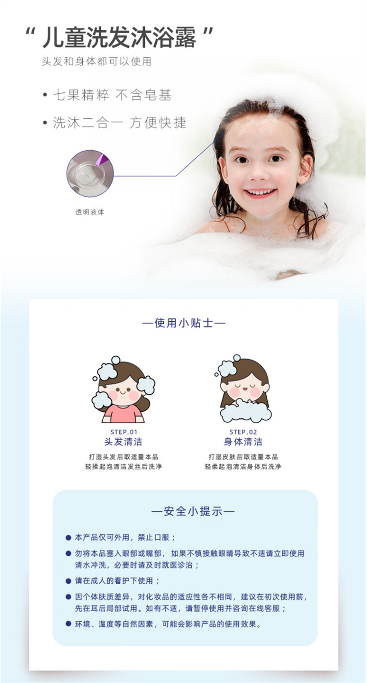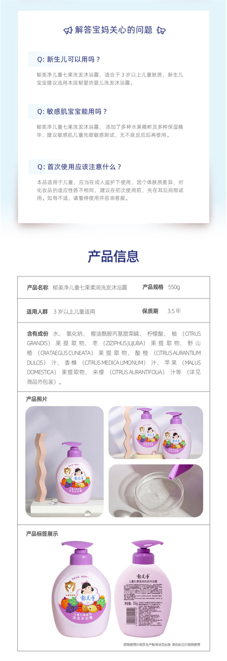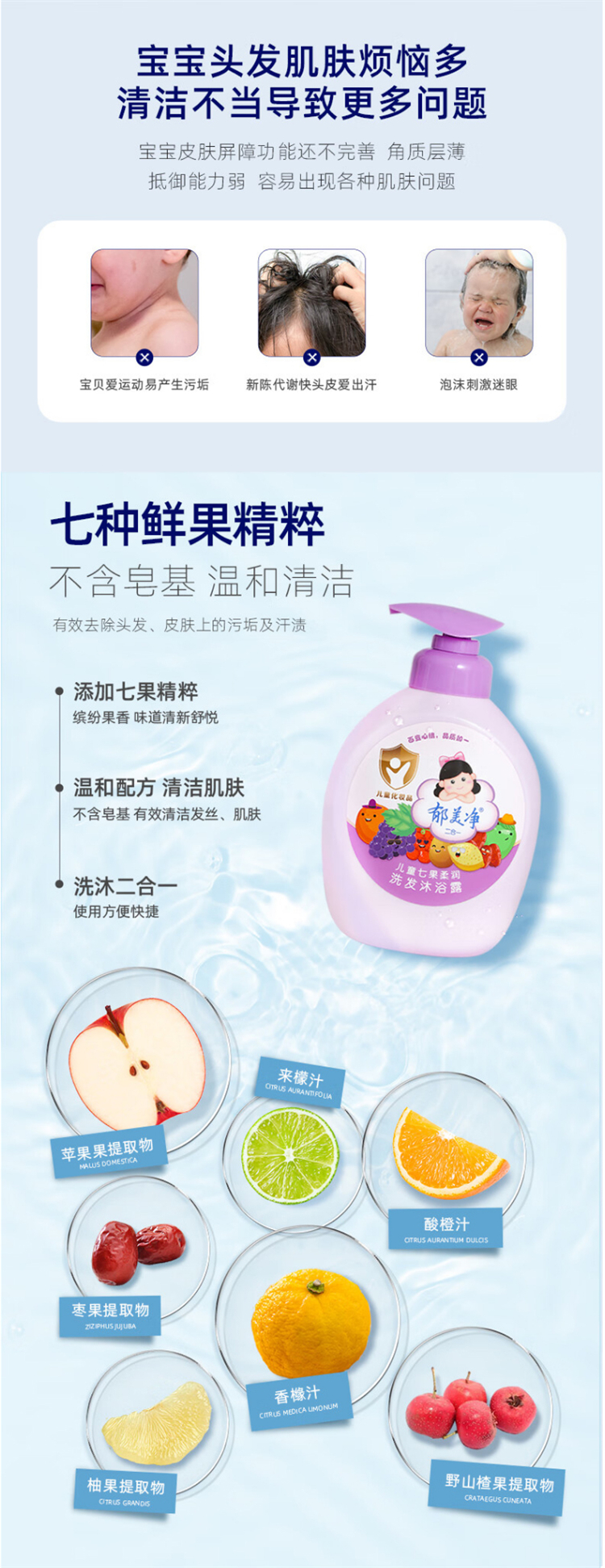 商品名称:郁美净儿童七果柔润洗发沐浴露550g(单位:瓶)