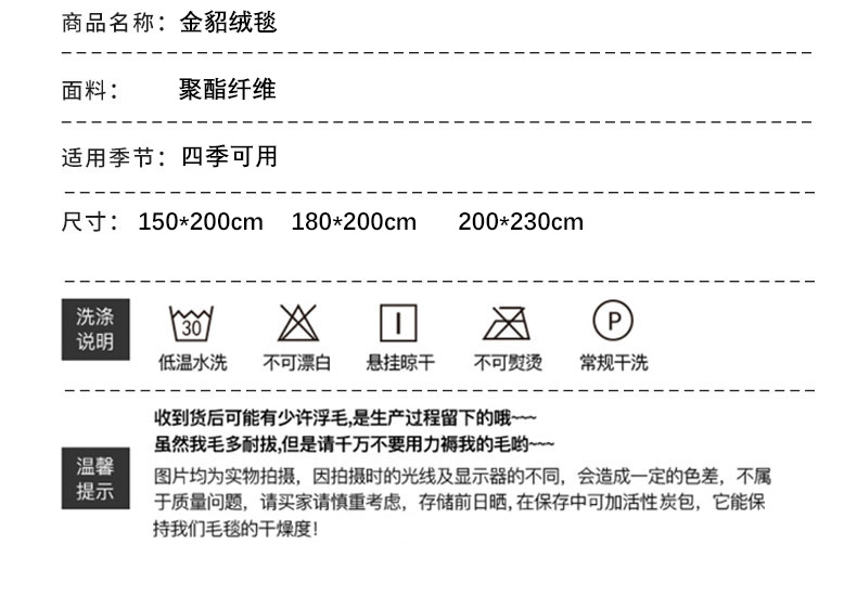 商品名称:约克罗兰金貂绒毯-约定YT0306(单位:条) 150*200cm