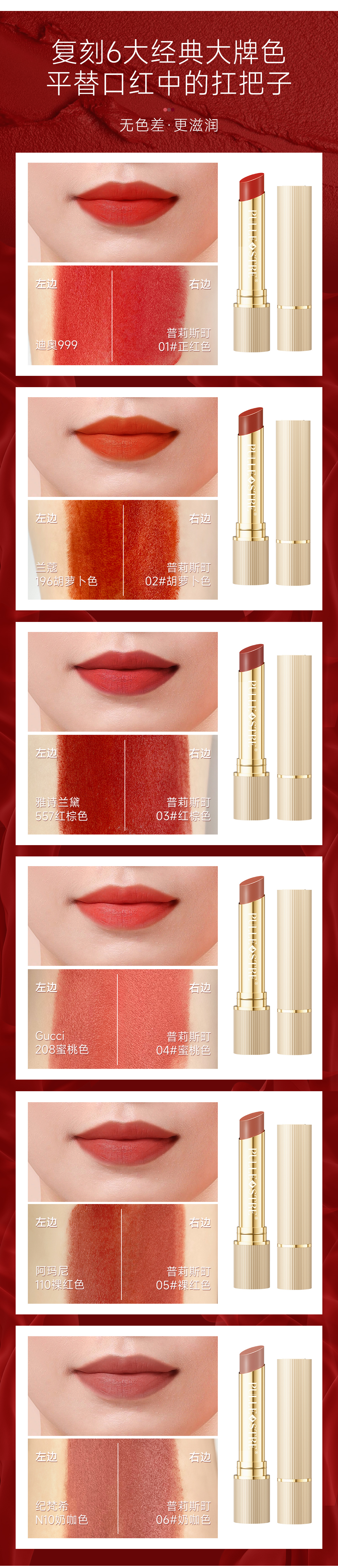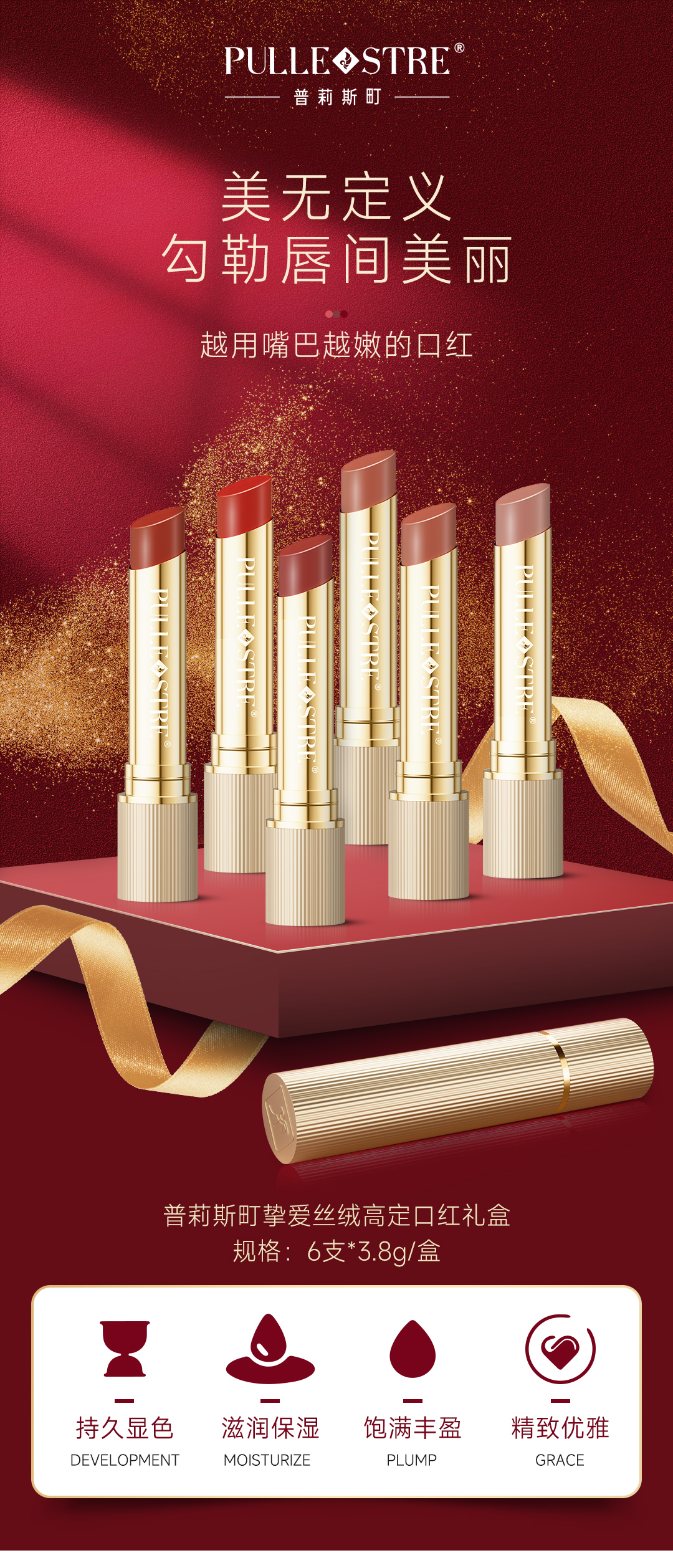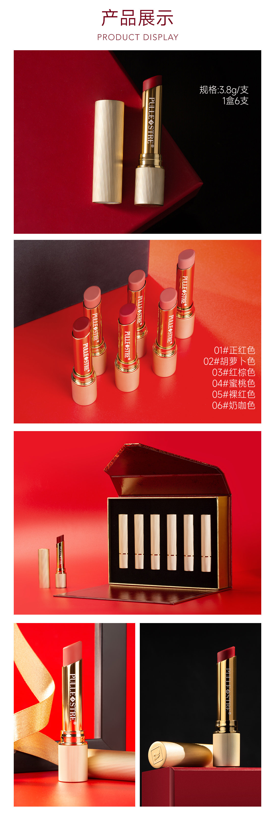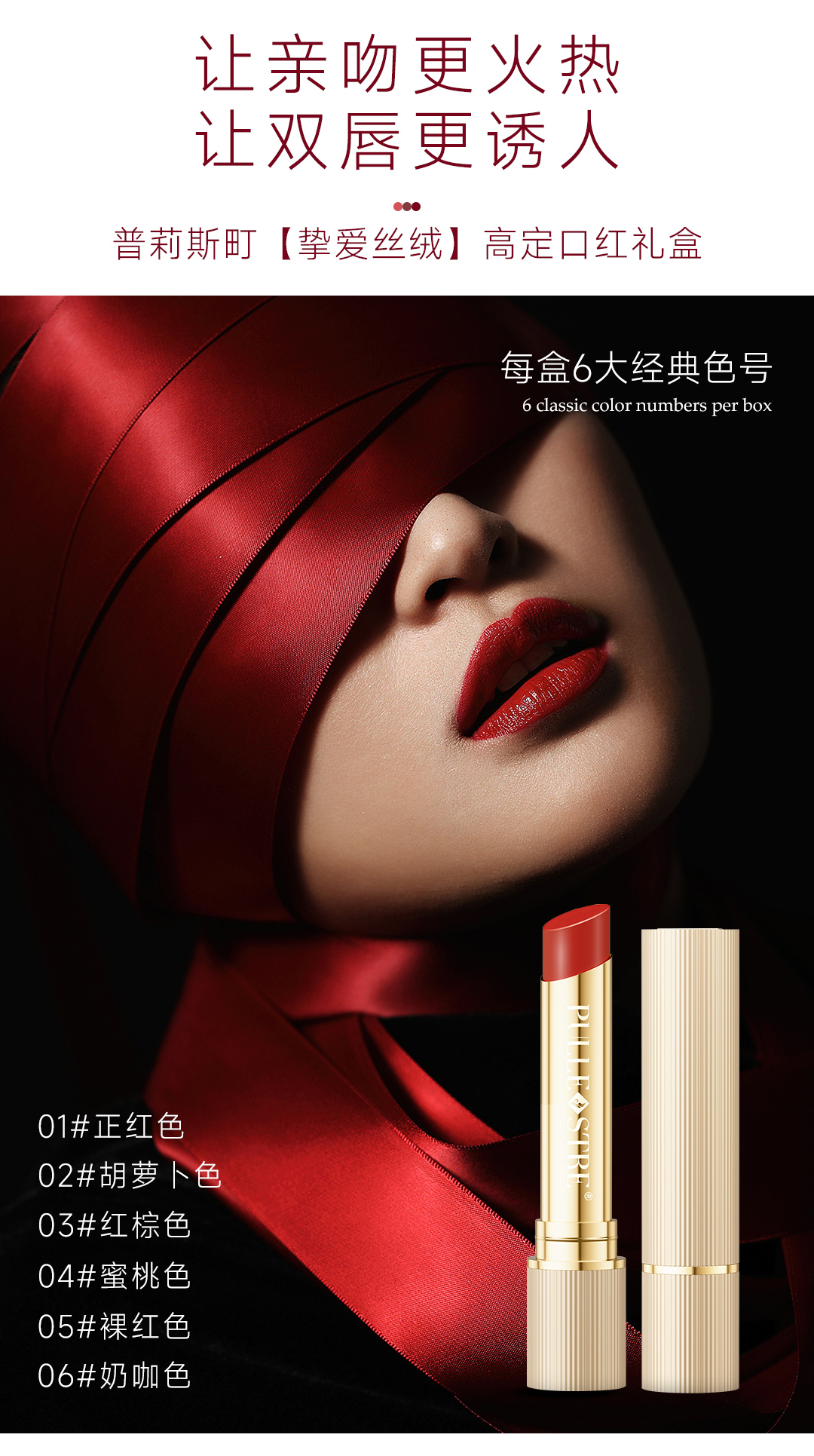 商品名称:普莉斯町富勒烯挚爱丝绒高定口红套盒 3.8g*6支/盒 规格