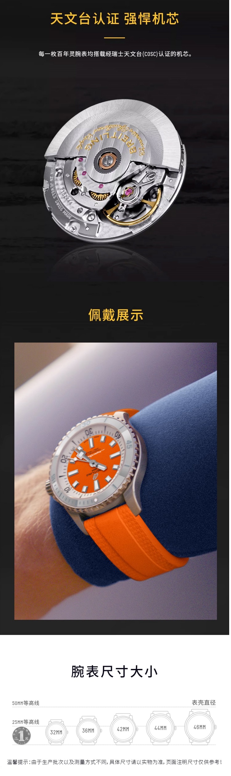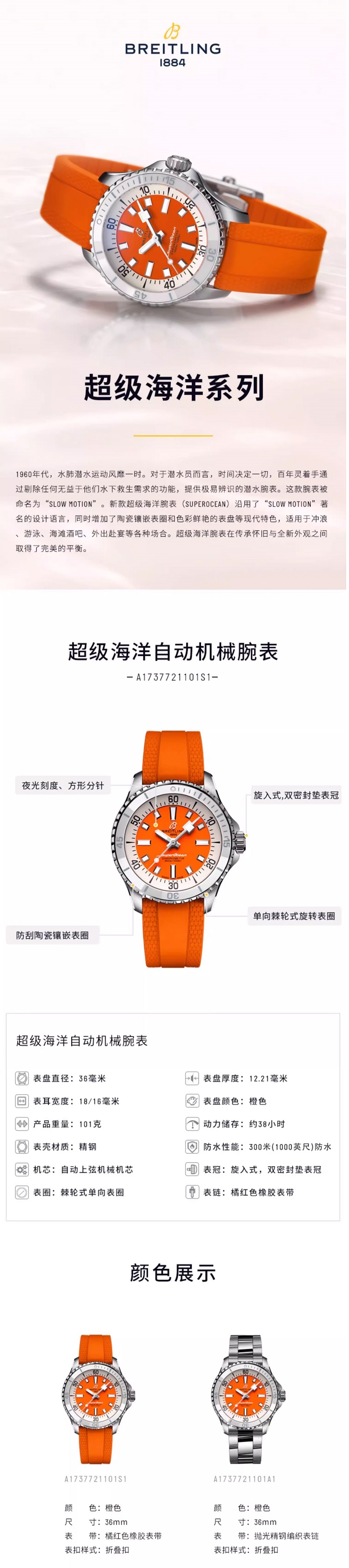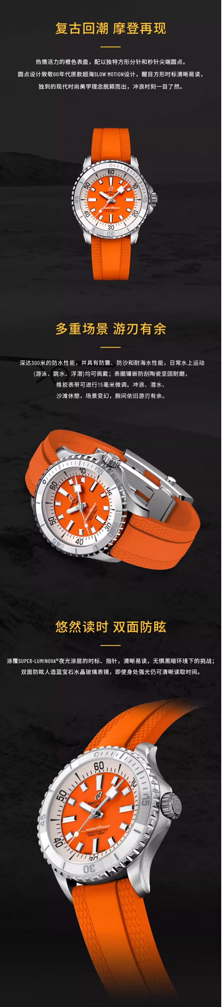 商品名称:百年灵(BREITLING)超级海洋系列机械36女表 A17377211O1S1(单位:块) 橙色